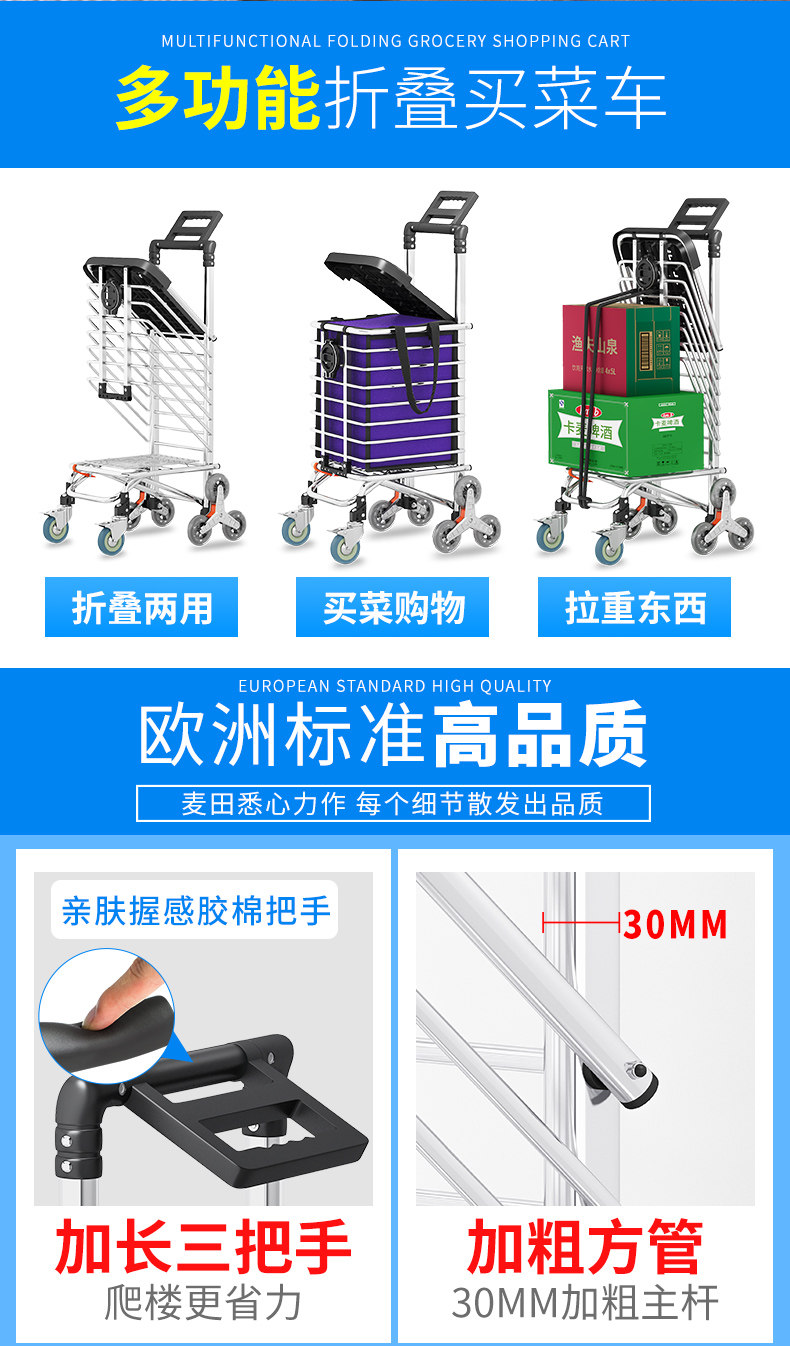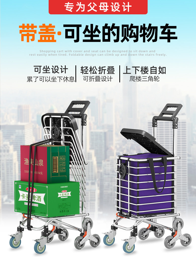 Продуктовая тележка, складная корзина для покупок, портативный чемодан для пожилых людей для домашнего использования, прицеп