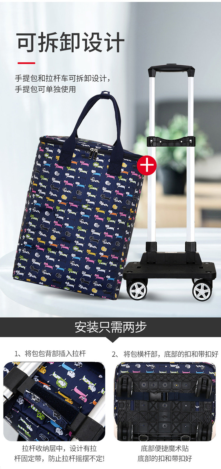 Вместительная и большая портативная продуктовая тележка, складной чемодан для домашнего использования, термос, шоппер