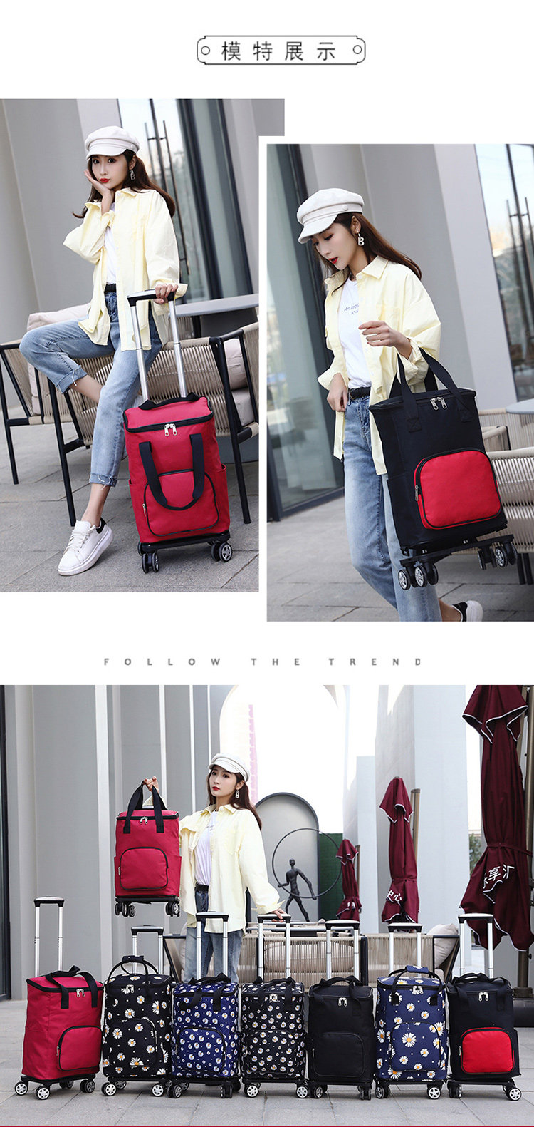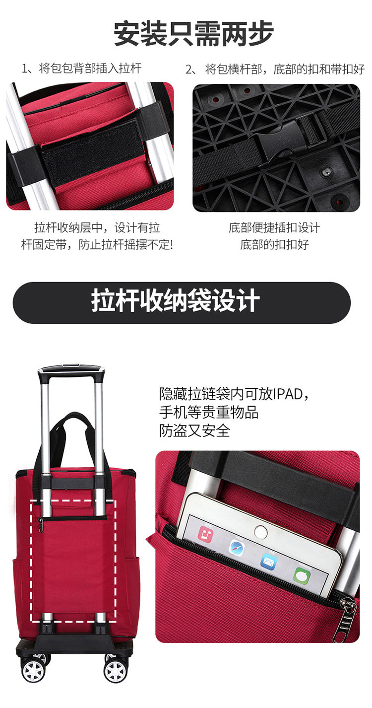 Портативный универсальный чемодан, складная съемная сверхлегкая водонепроницаемая вместительная и большая корзина для покупок, поворотные колеса