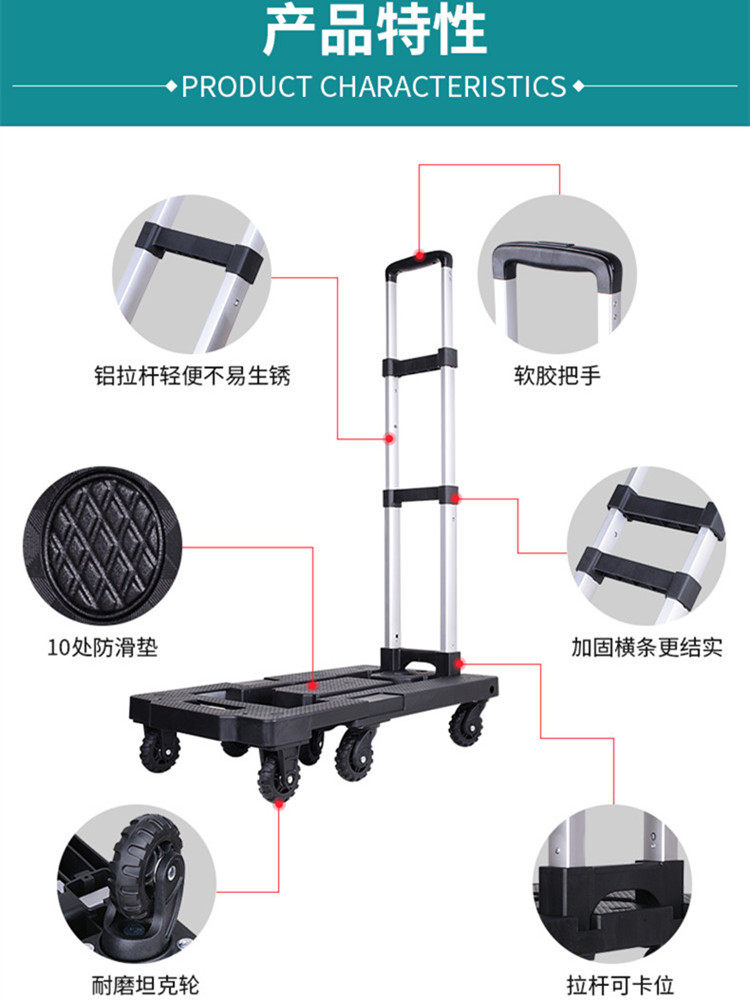 艇堡 Складная портативная тележка, чемодан, багажный прицеп для домашнего использования для переезда