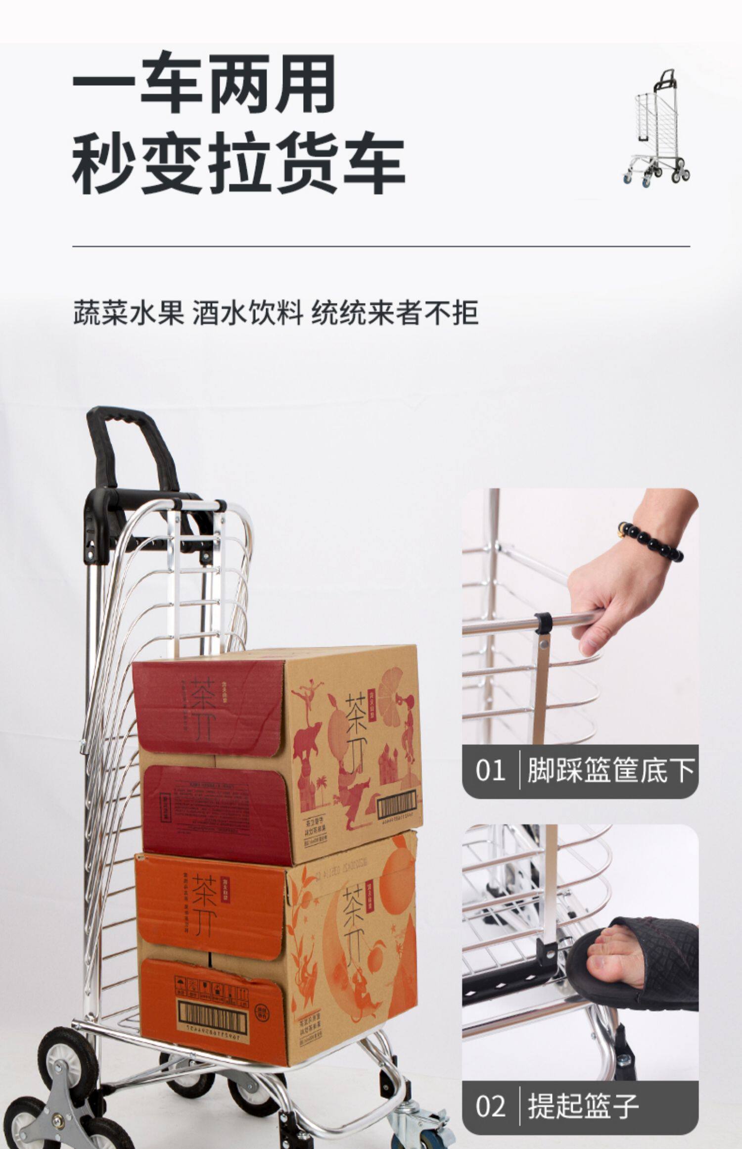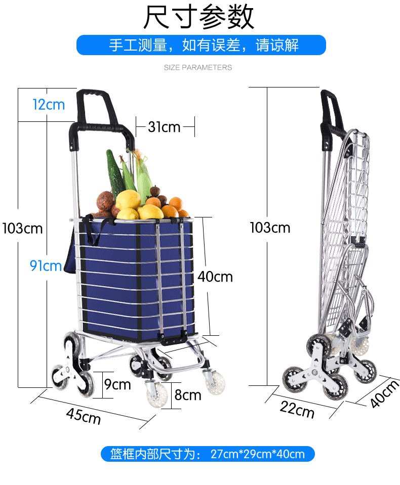 Складная портативная корзина для покупок, прицеп для домашнего использования для пожилых людей, тележка