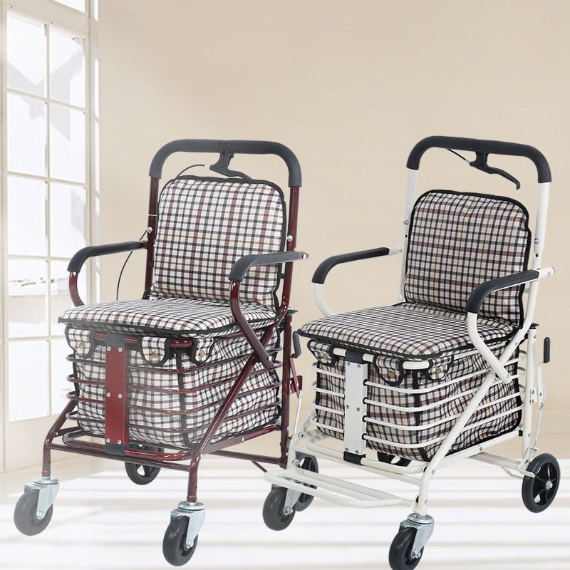 Складные ходунки для пожилых людей, четырехколесный автомобиль, корзина для покупок с сидением, продуктовая тележка