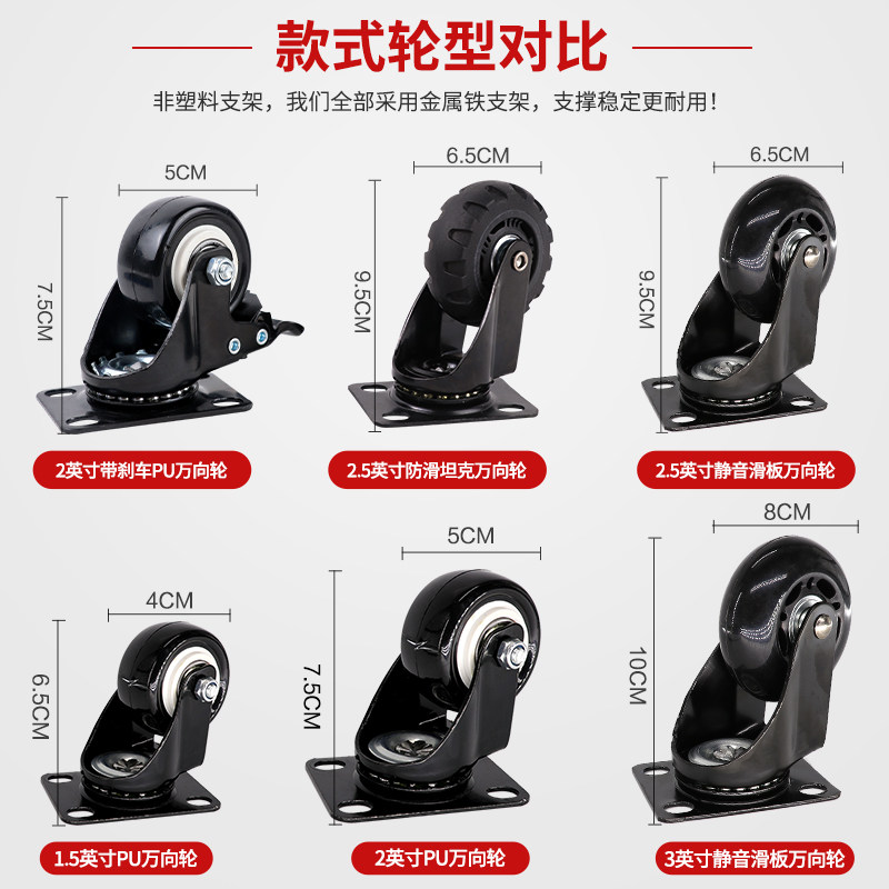 - [Бесплатные 2 веревки] Шестиколесные 2-дюймовые износостойкие полиуретановые колеса с тормозами-черный BY01-T
