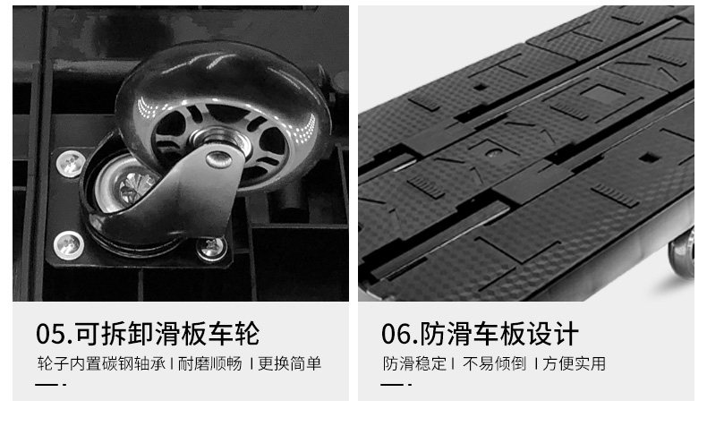 - Увеличенная семиколесная модель — 2 направленных колеса + 5 универсальных колес — 3-дюймовые колеса для скейтборда — черные BY03-P