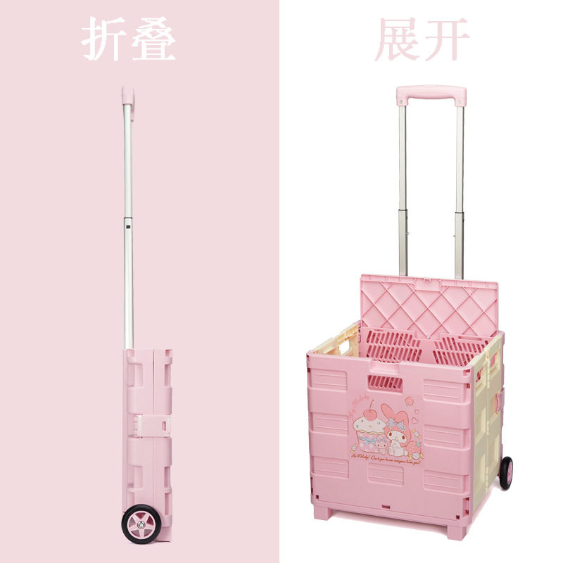 Мультяшная портативная пластиковая складная корзина для покупок, продуктовая тележка для домашнего использования, чемодан