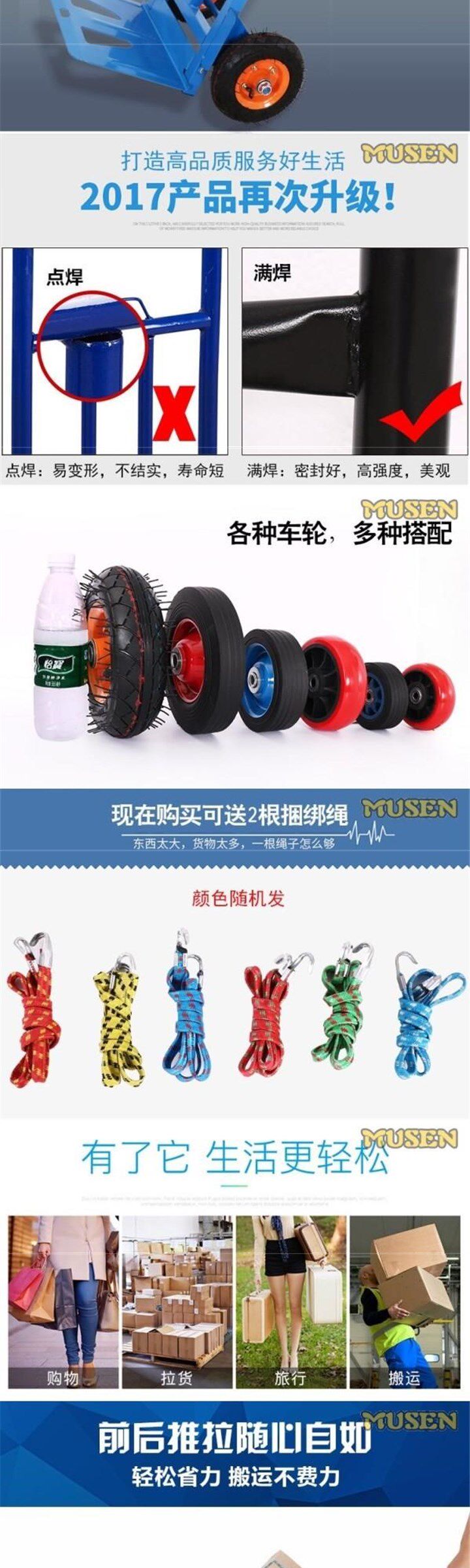 - Утолщенные и широкие резиновые колеса для подъема по лестнице + получите 2