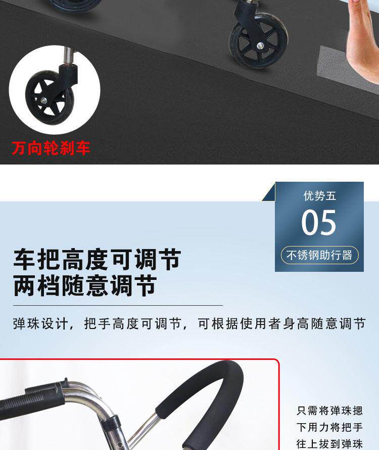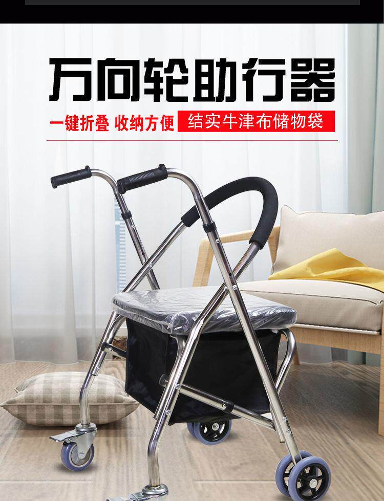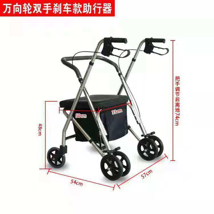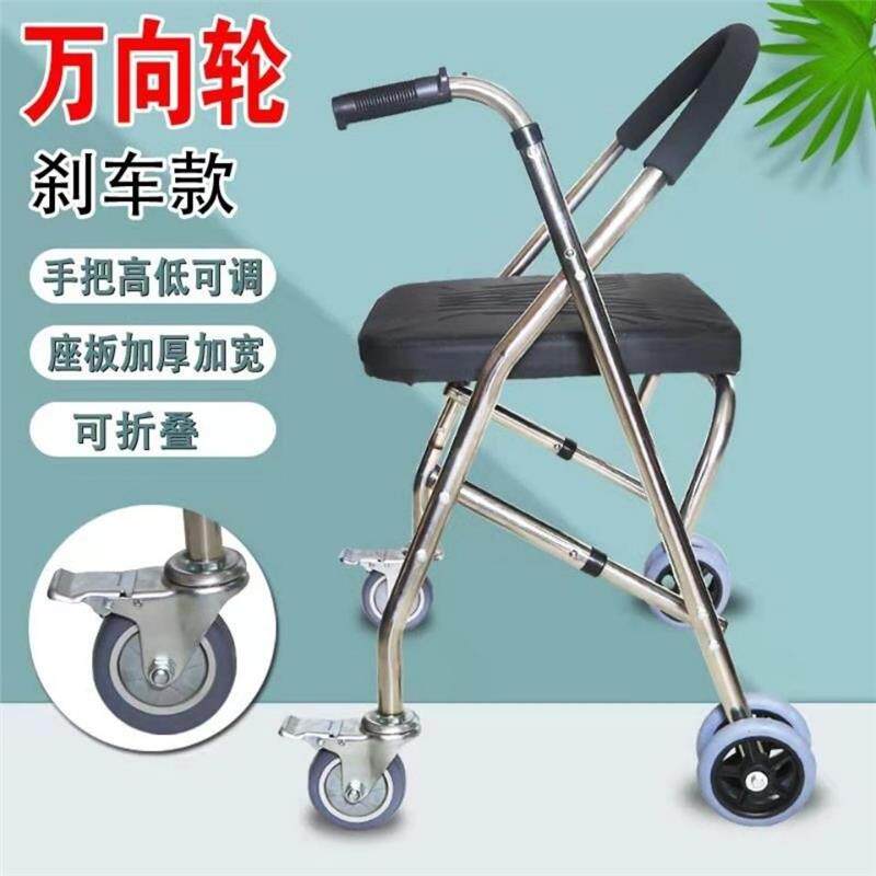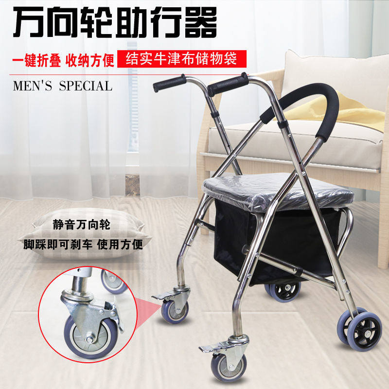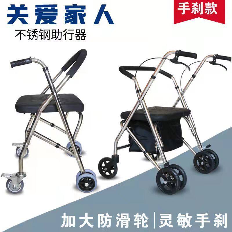 Вспомогательная тележка для пожилых людей на четырех колесах из нержавеющей стали, складной тормоз, учит ходить