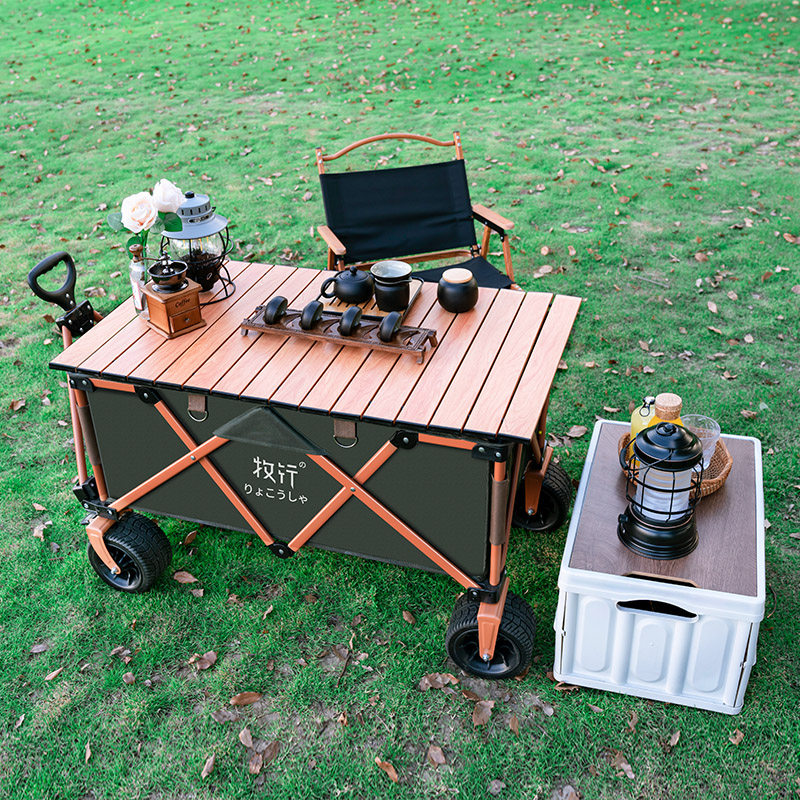 - Комбинация кемпинга [Зеленое колесо+Redwood Table Board+2 черных стульев]