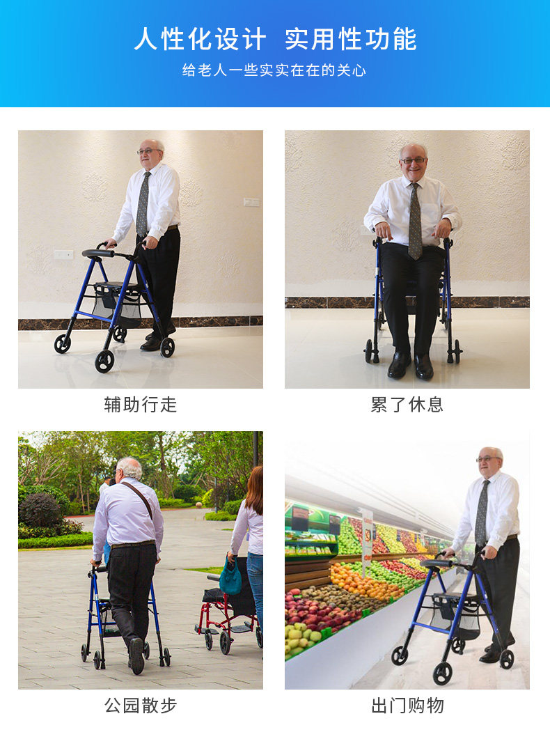 Складная тележка, металлические универсальные ходунки, корзина для покупок с сидением, портативный туалет, алюминиевый сплав