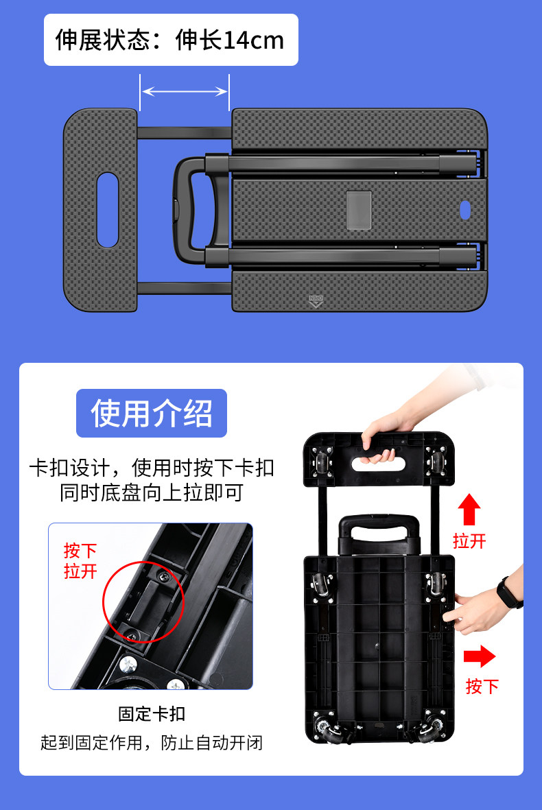 Складная тележка для домашнего использования, портативный прицеп, багажный чемодан