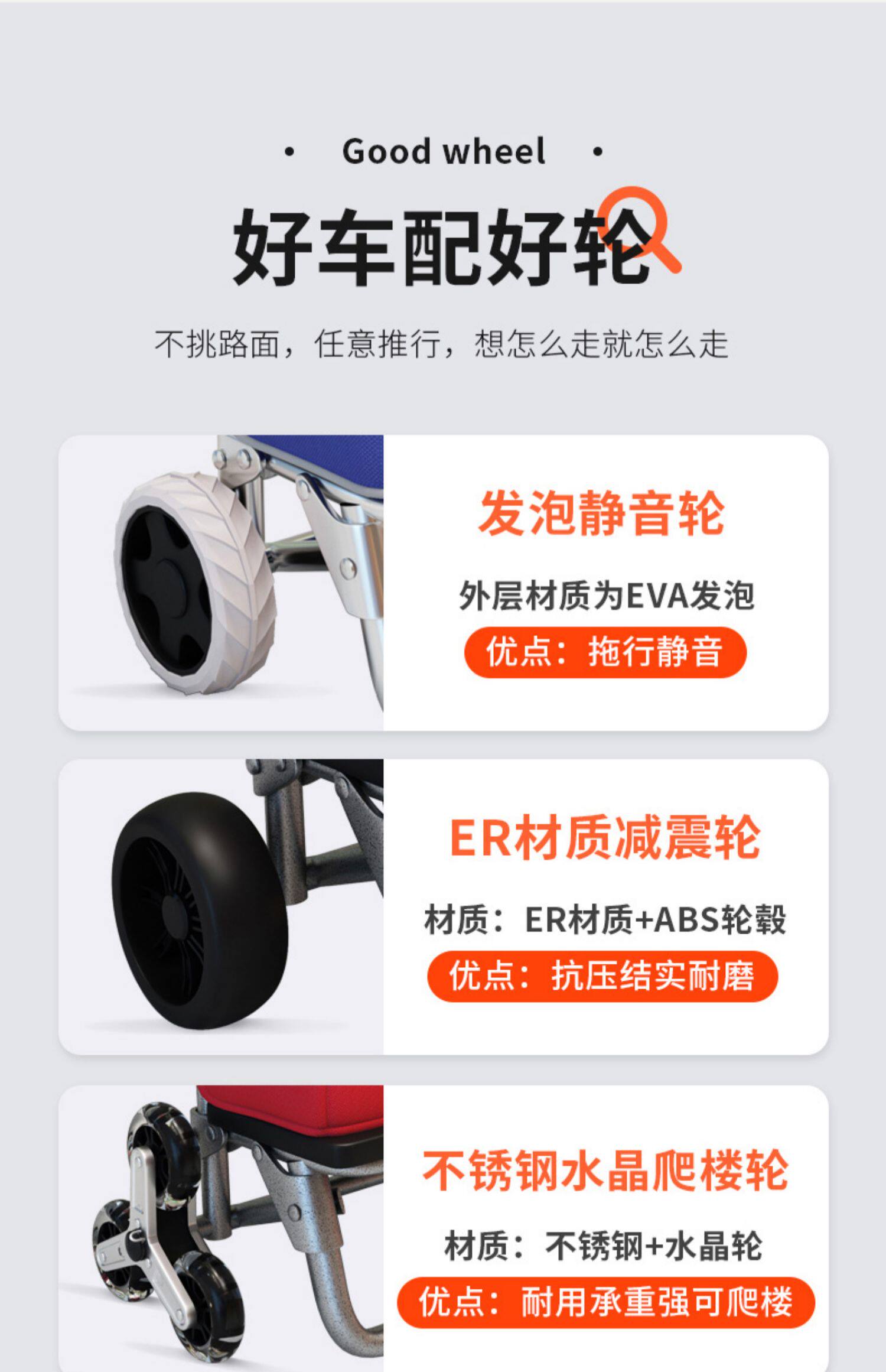 - [Подкрепление рама из нержавеющей стали] PU Большие колеса+защищенные от утечки с смайликом с смайликом