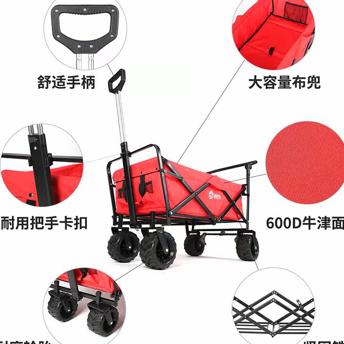 Дорожная складная тележка для кемпинга на четырех колесах, универсальный прицеп, домашний питомец