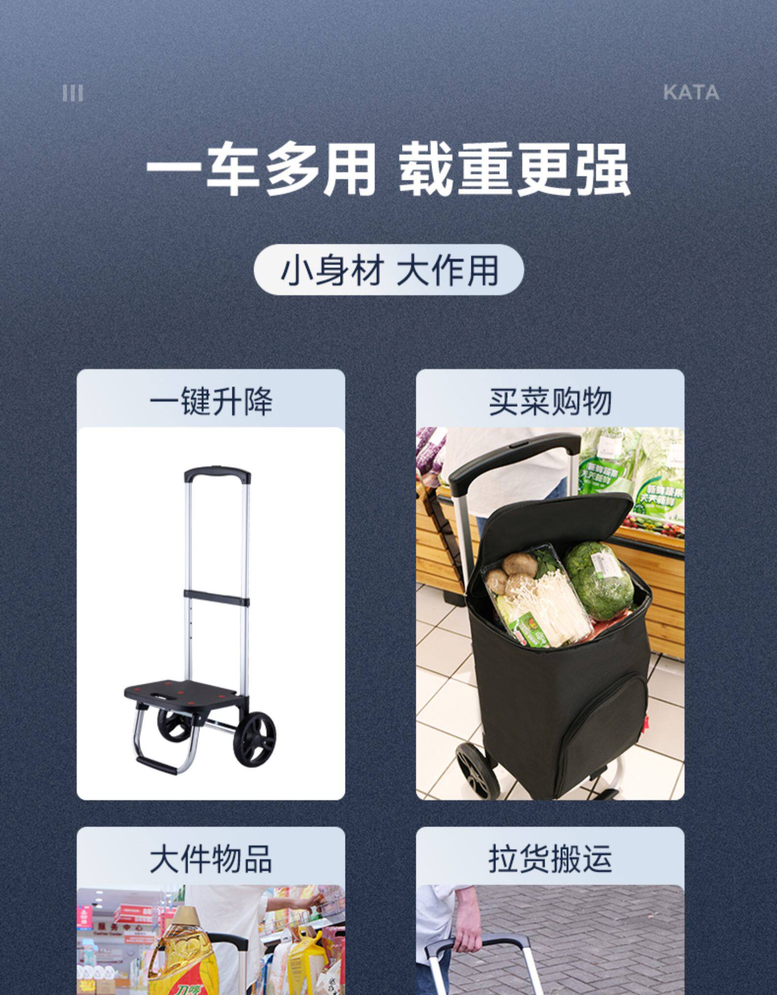 卡塔 Металлическая портативная складная тележка для домашнего использования, прицеп с лестницей, алюминиевый сплав