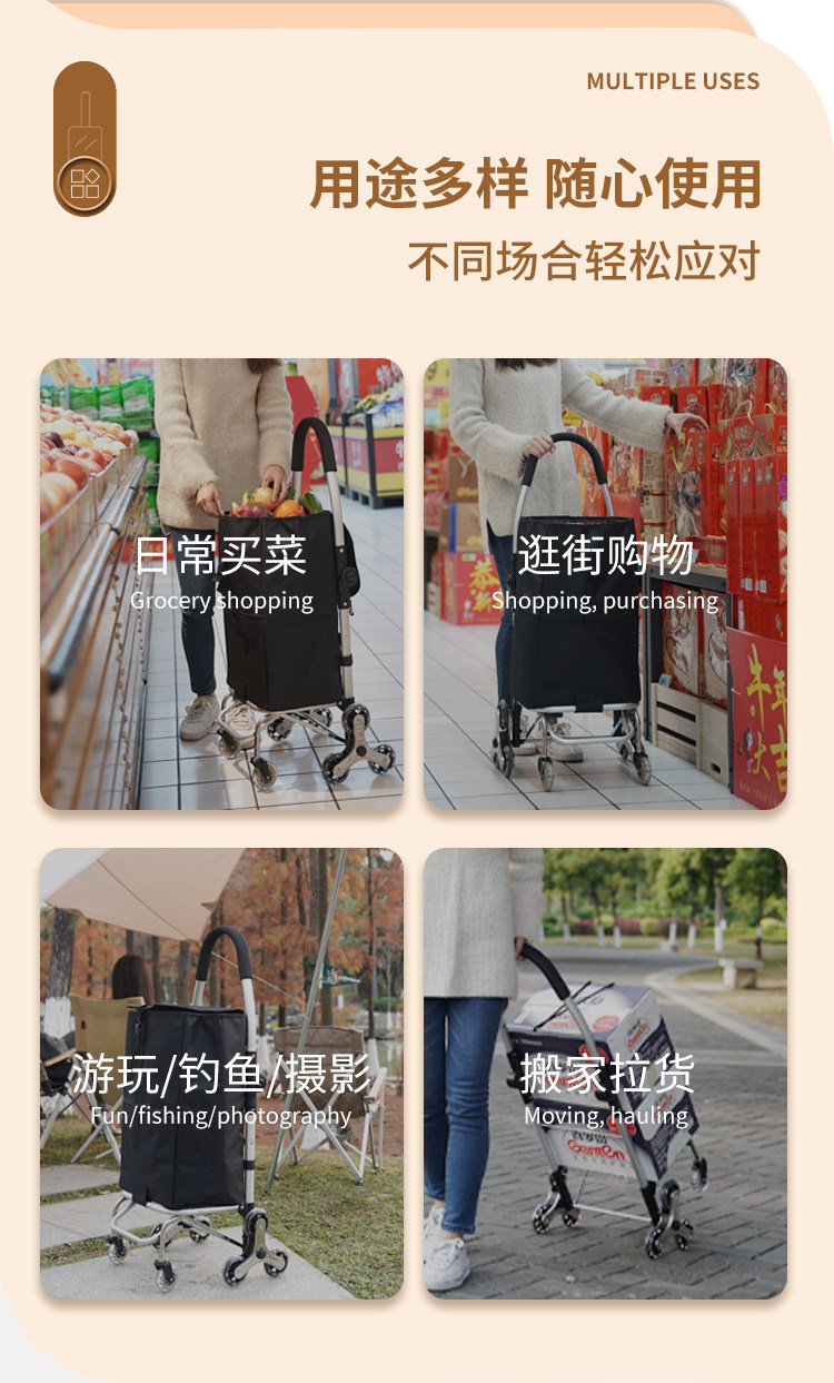 Портативная домашняя продуктовая тележка с лестницей для домашнего использования, складной чемодан, прицеп для пожилых людей