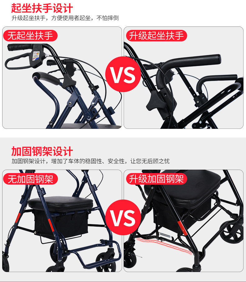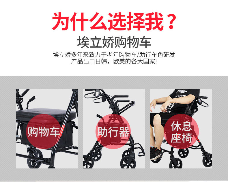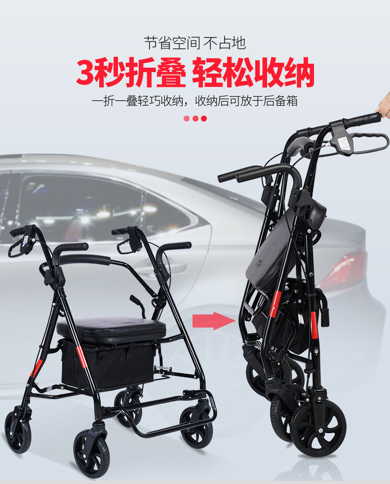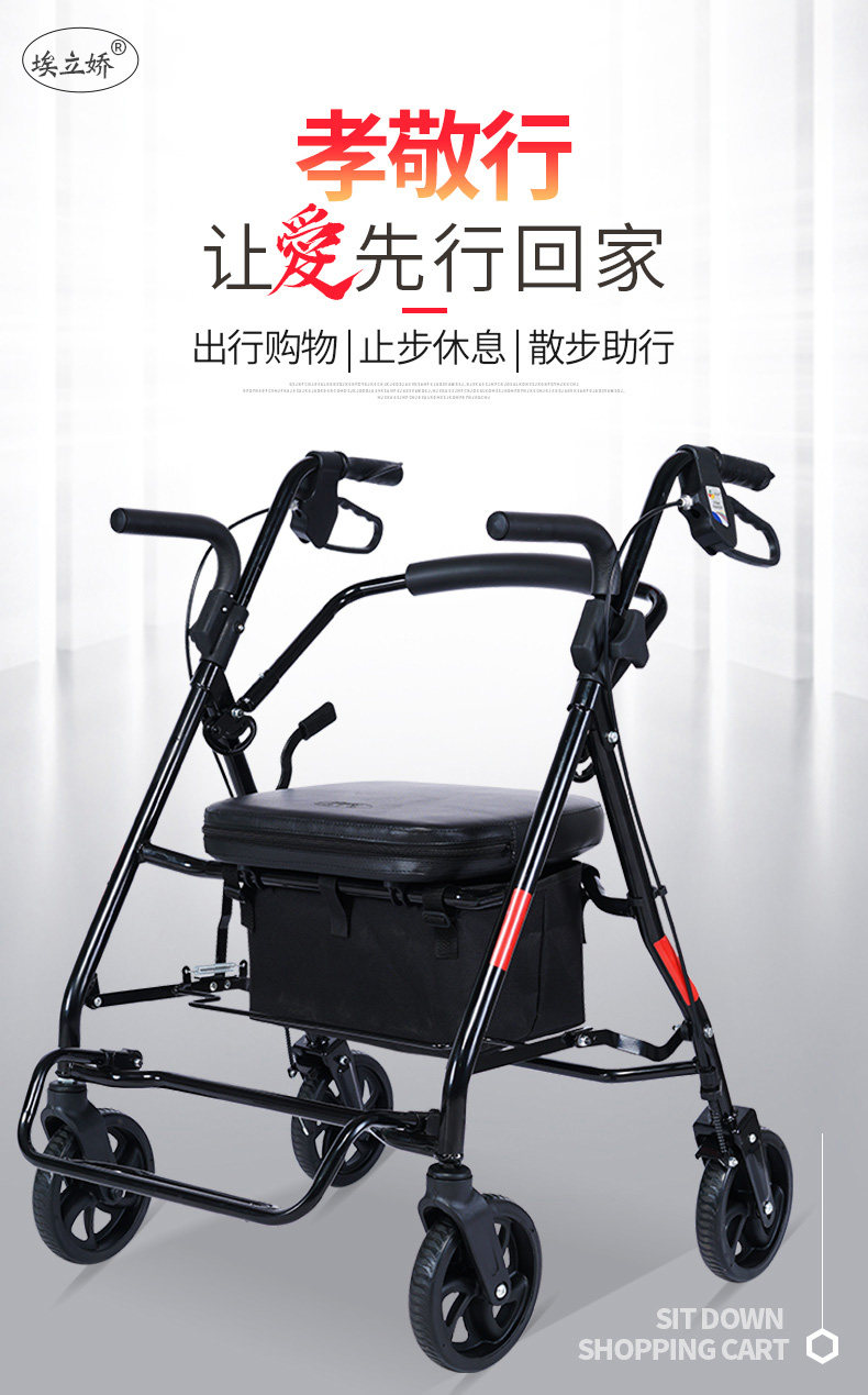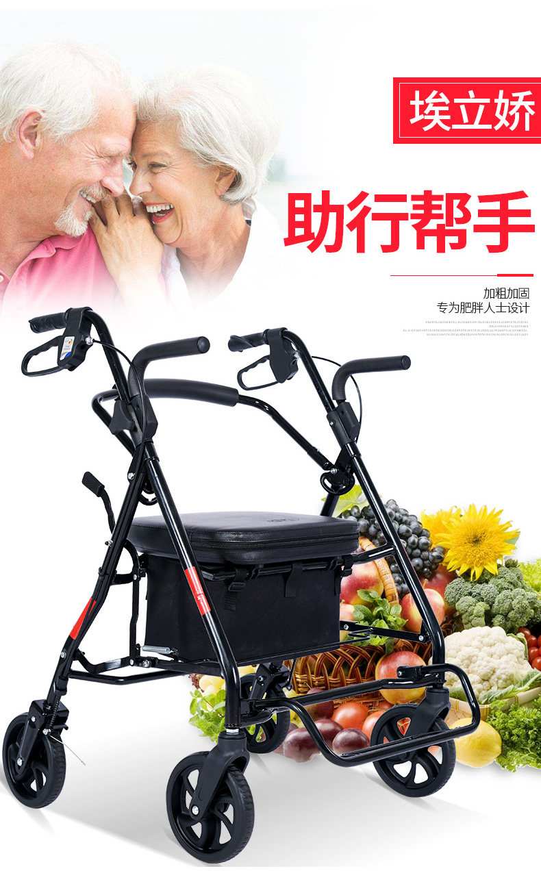 Корзина для покупок для пожилых людей, тележка, ходунки на четырех колесах, складной велосипед, колесо