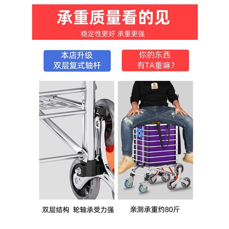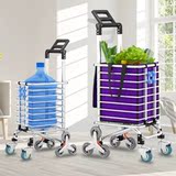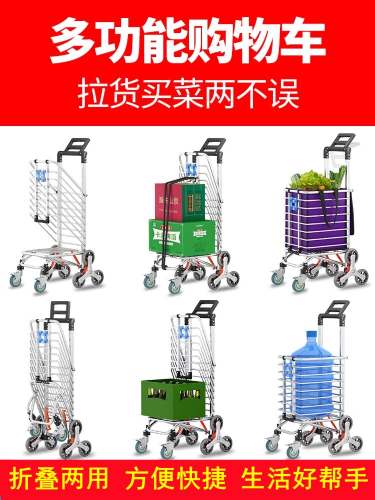 Металлическая портативная продуктовая тележка из нержавеющей стали, складной прицеп, корзина для покупок, алюминиевый сплав