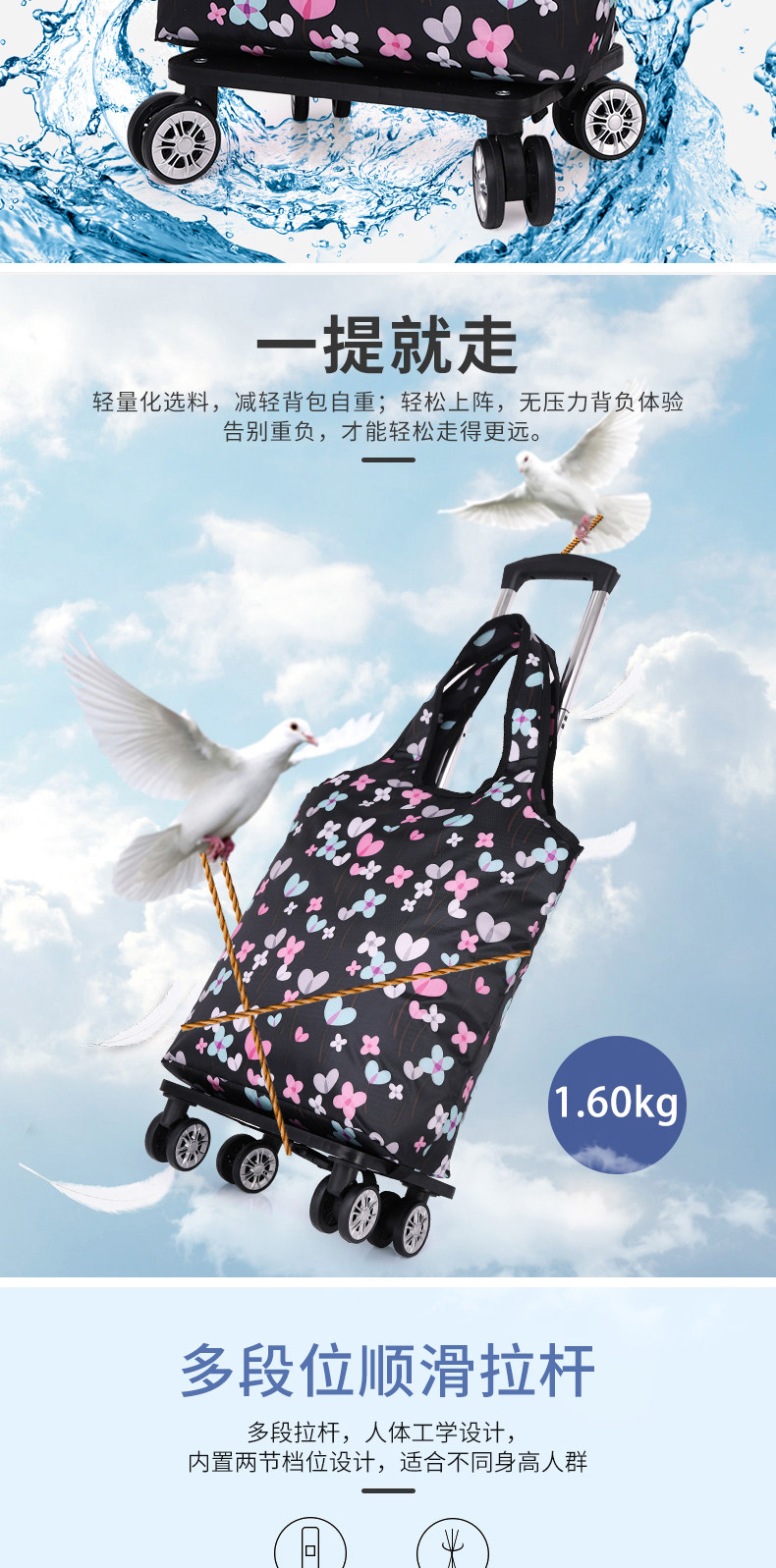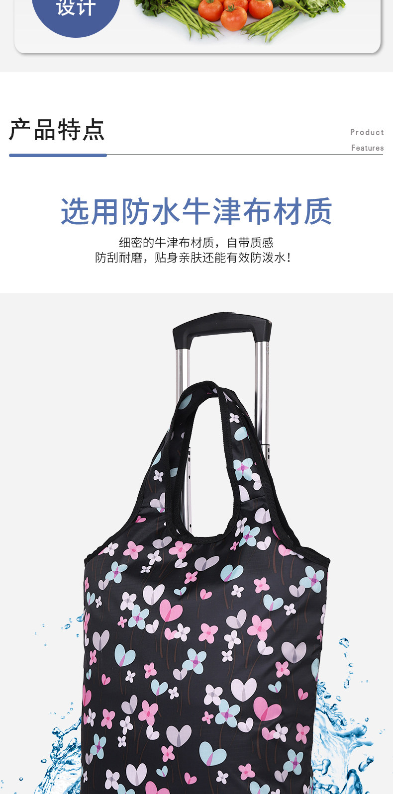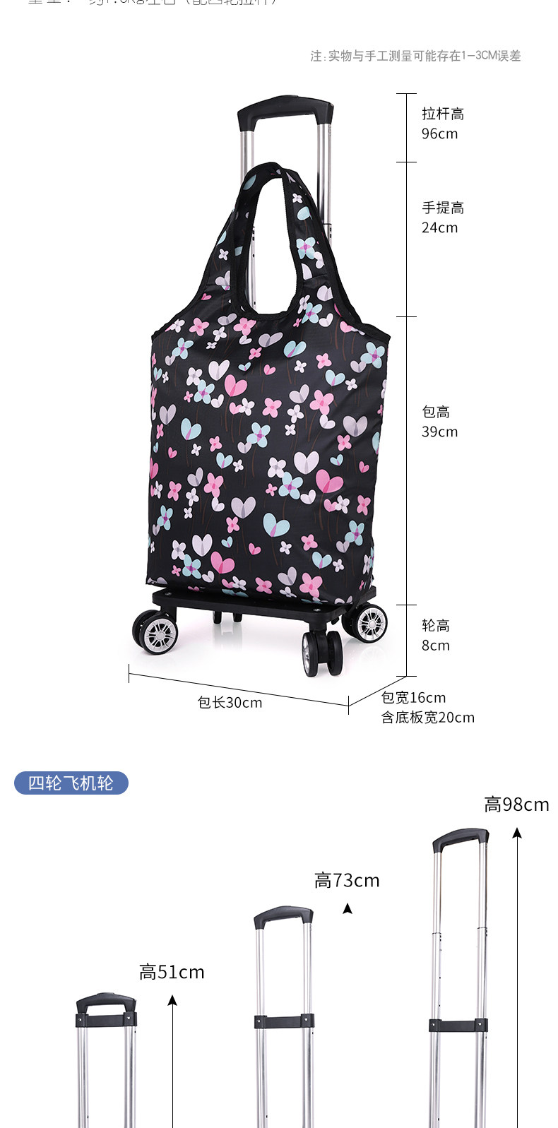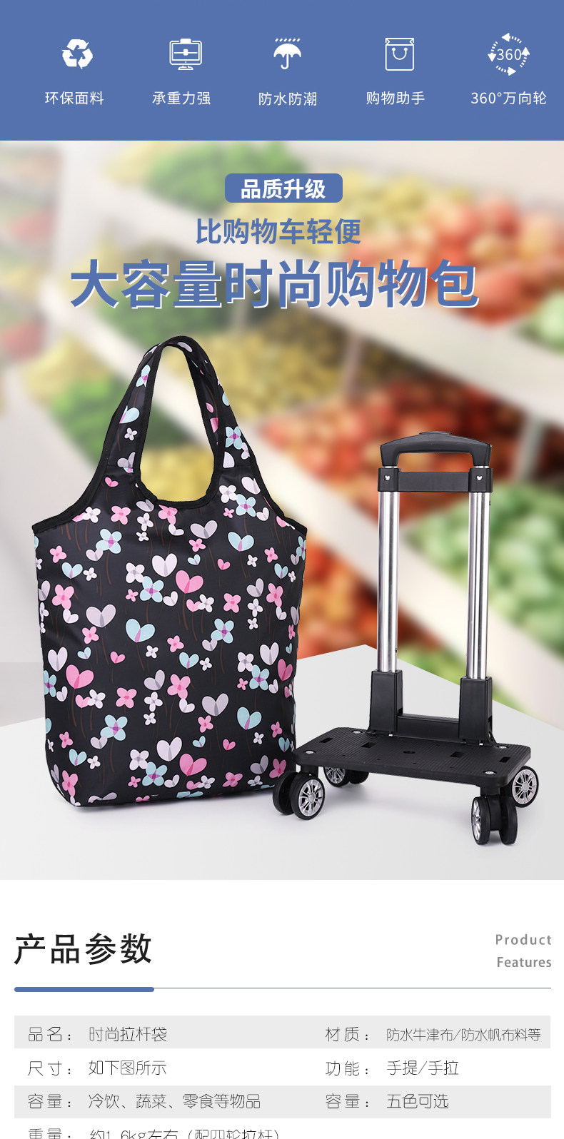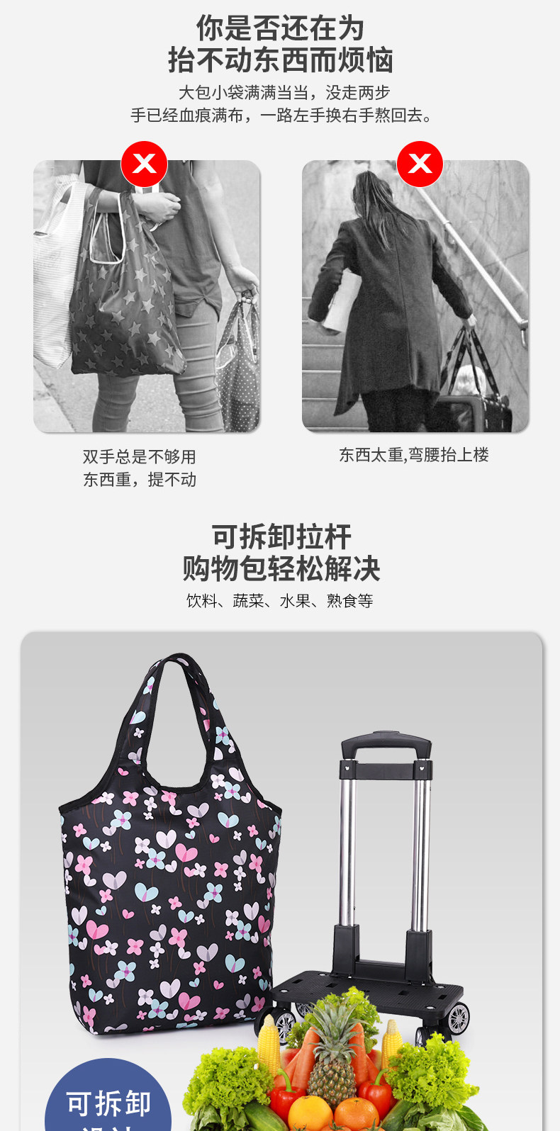 Складывание овощной машины, маленькой машины, портативной рукой -Пулл может толкнуть свежую оловянную фольгу и зажечь автомобиль для покупок домой