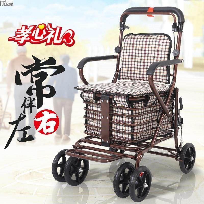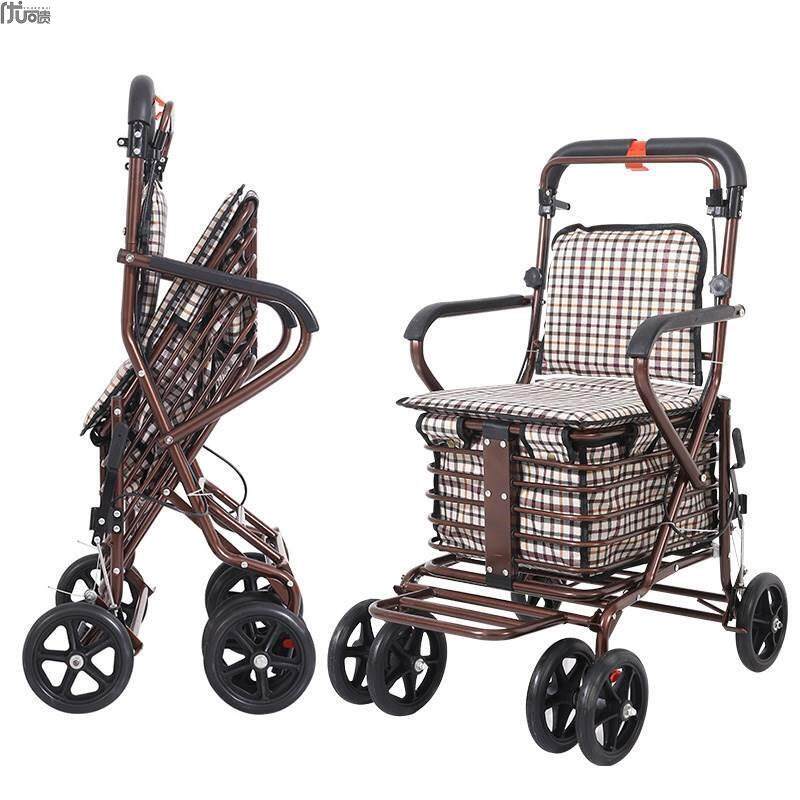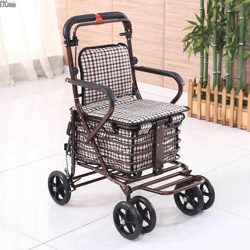 Корзина для покупок для пожилых людей, складная тележка, портативный мопед с сидением на четырех колесах