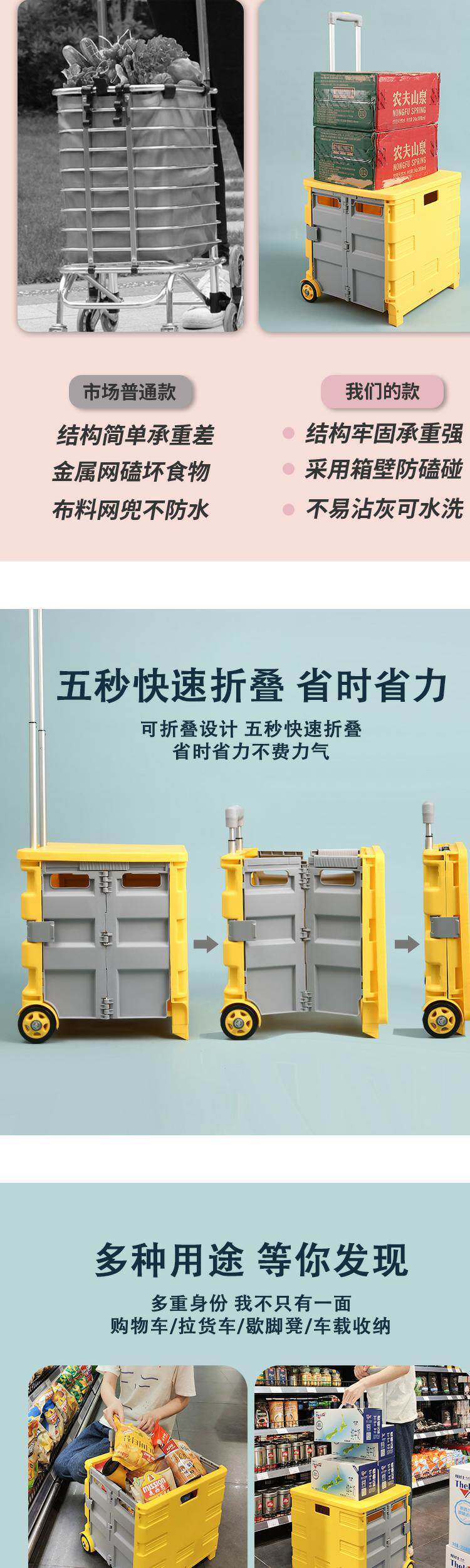 Портативная продуктовая тележка, корзина для покупок, чемодан, прицеп