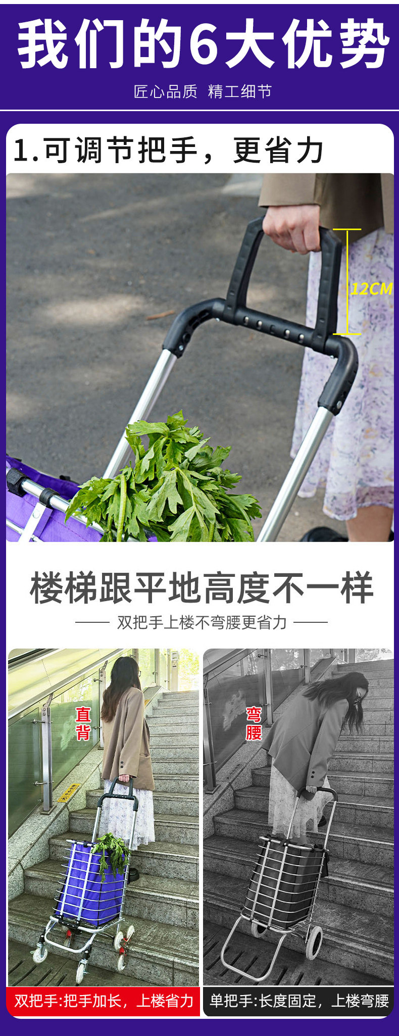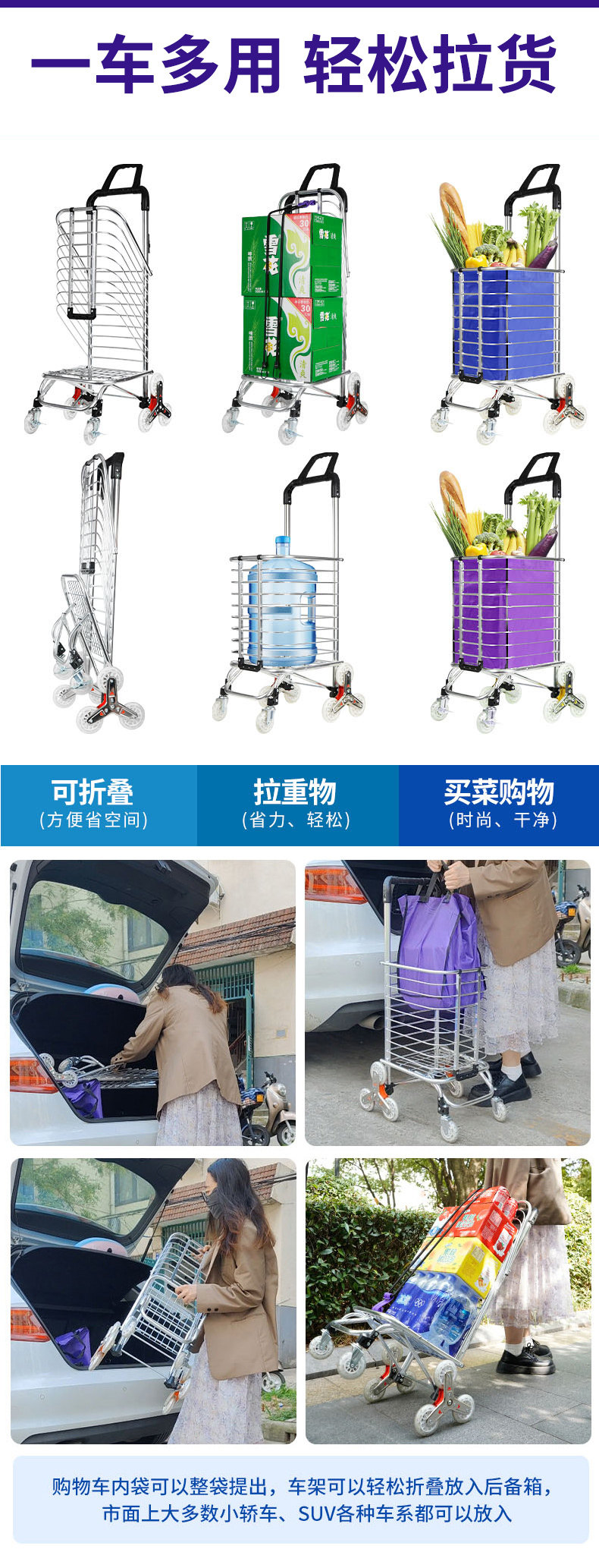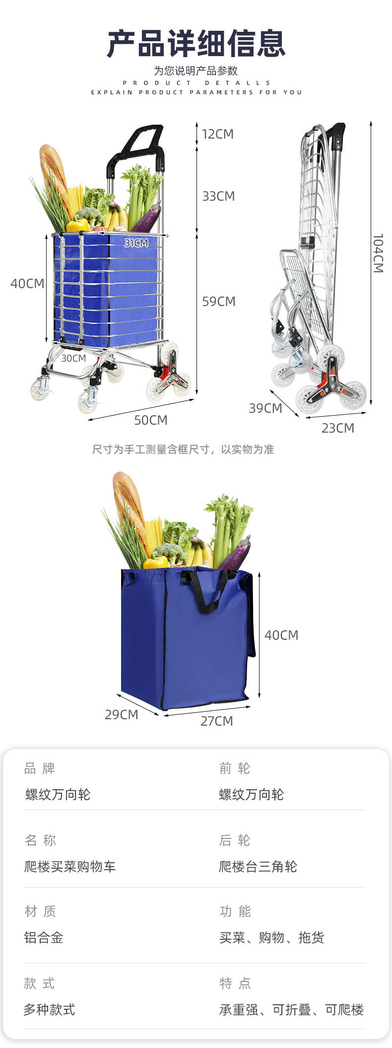 Продуктовая тележка для пожилых людей, складной сверхлегкий прицеп, корзина для покупок