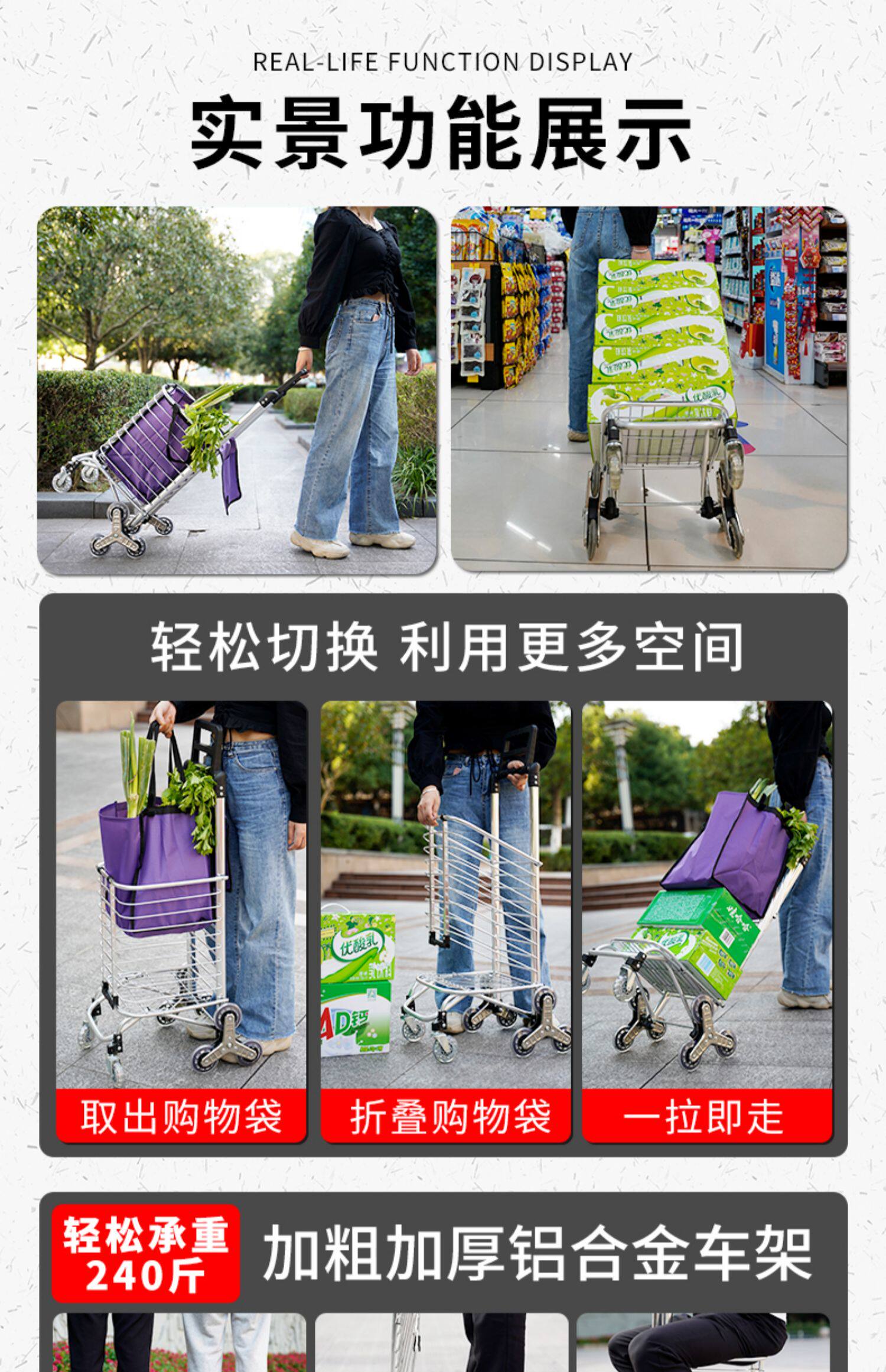 Складная корзина для покупок, прицеп, чемодан для пожилых людей, продуктовая тележка