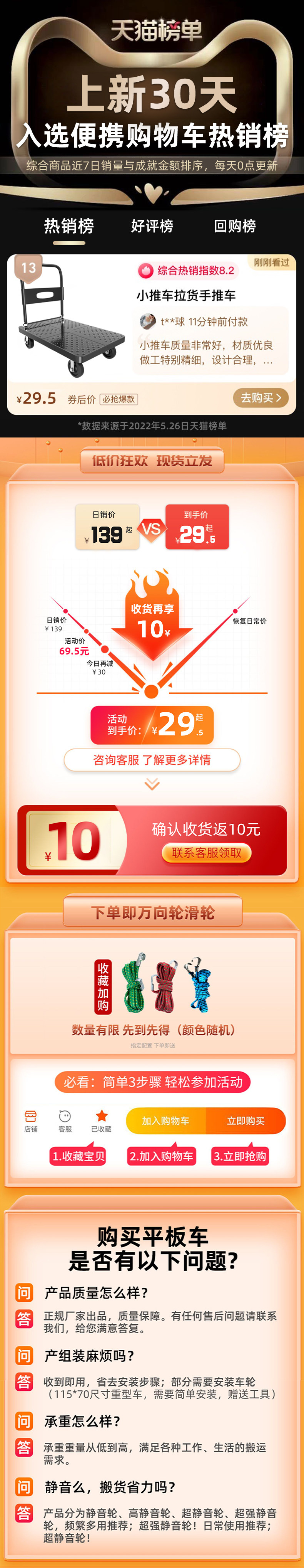 Тележка, складной портативный прицеп для домашнего использования, тяжелый бортовой грузовик