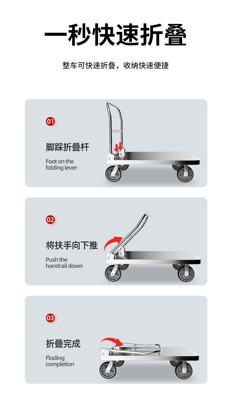 Тележка из нержавеющей стали, складной прицеп, бортовой грузовик