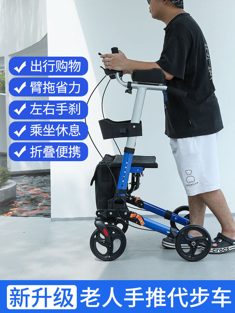 雅德 Помощь при ходьбе для пожилых людей, четырехколесная тележка для пожилых людей, складной ручной толкатель, вспомогательный артефакт для покупок, защищающий от падения.