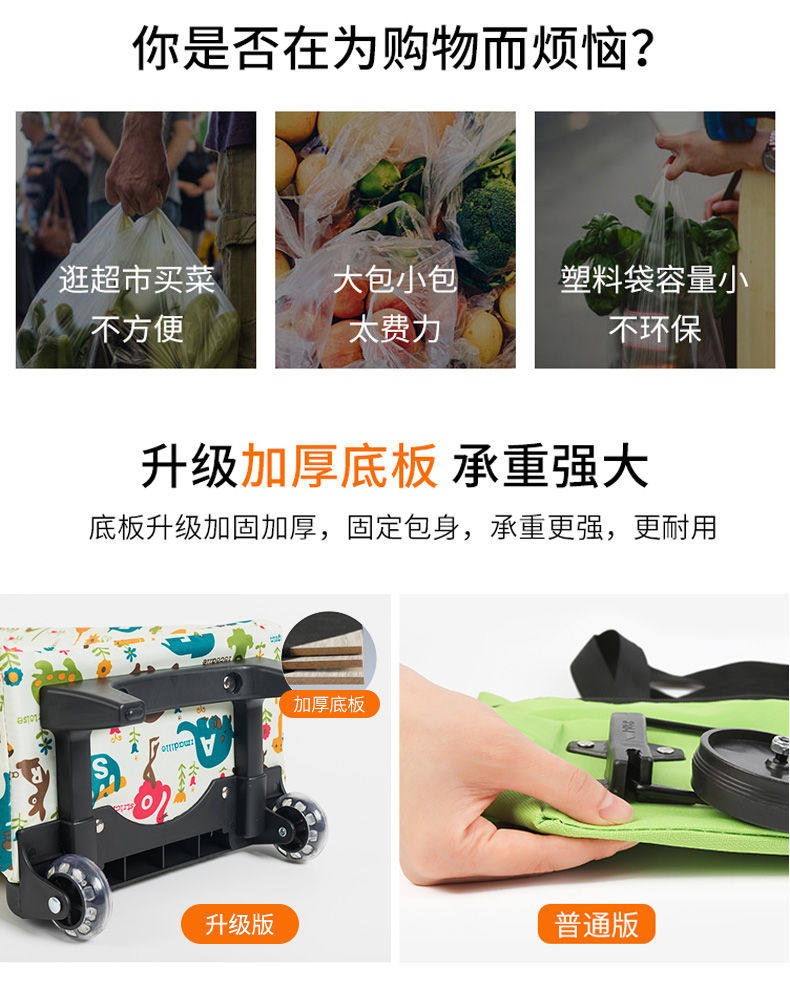 Корзина для покупок, багажный тканевый мешок, портативный складной прицеп, продуктовая тележка для пожилых людей