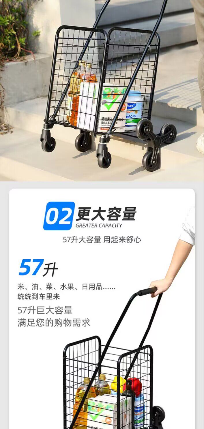 杰适 Портативная складная корзина для покупок, универсальная багажная продуктовая тележка, новая коллекция, поворотные колеса