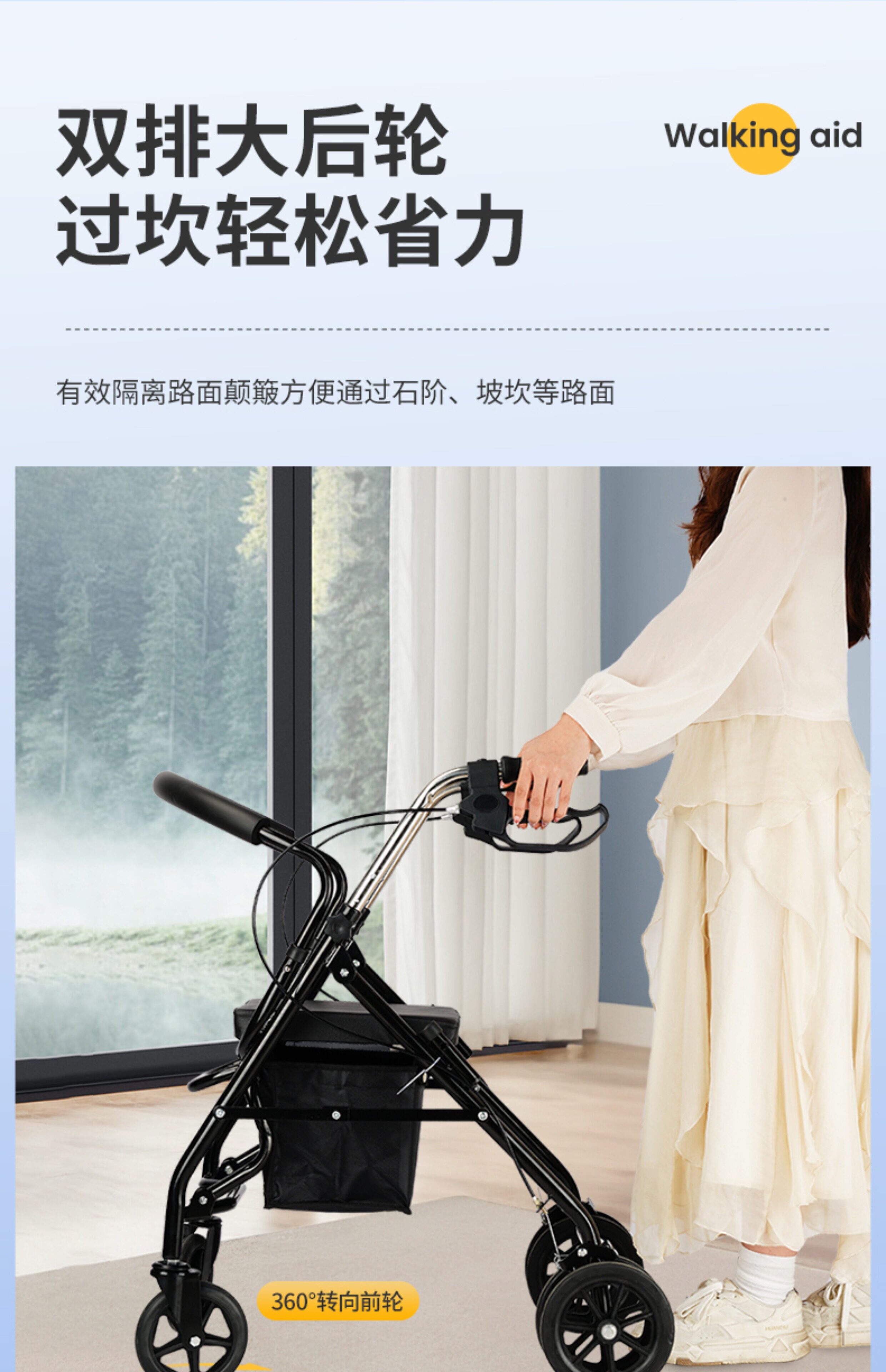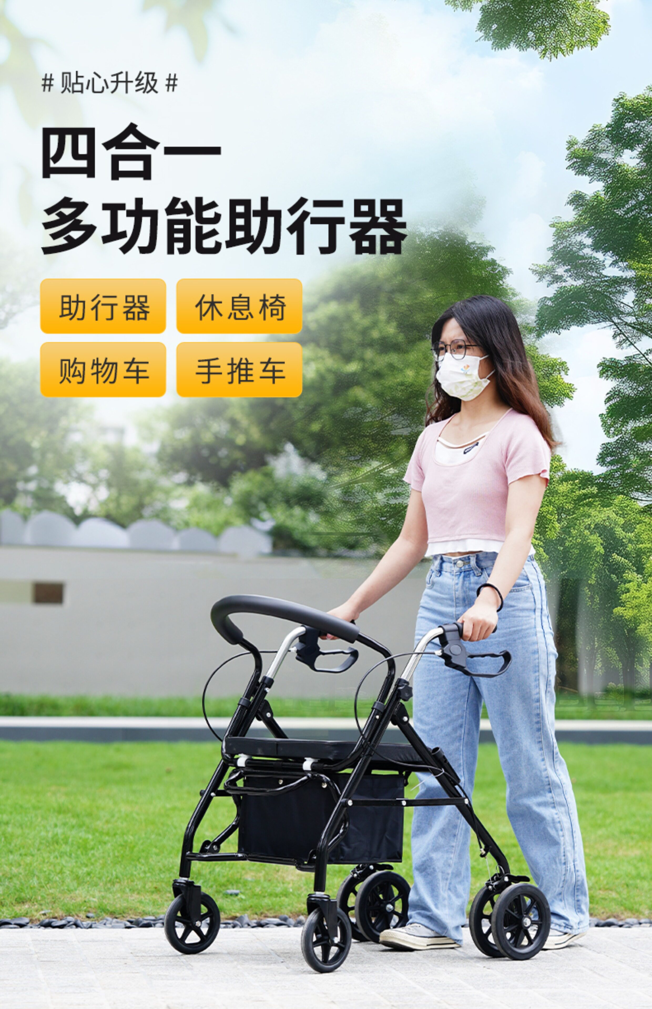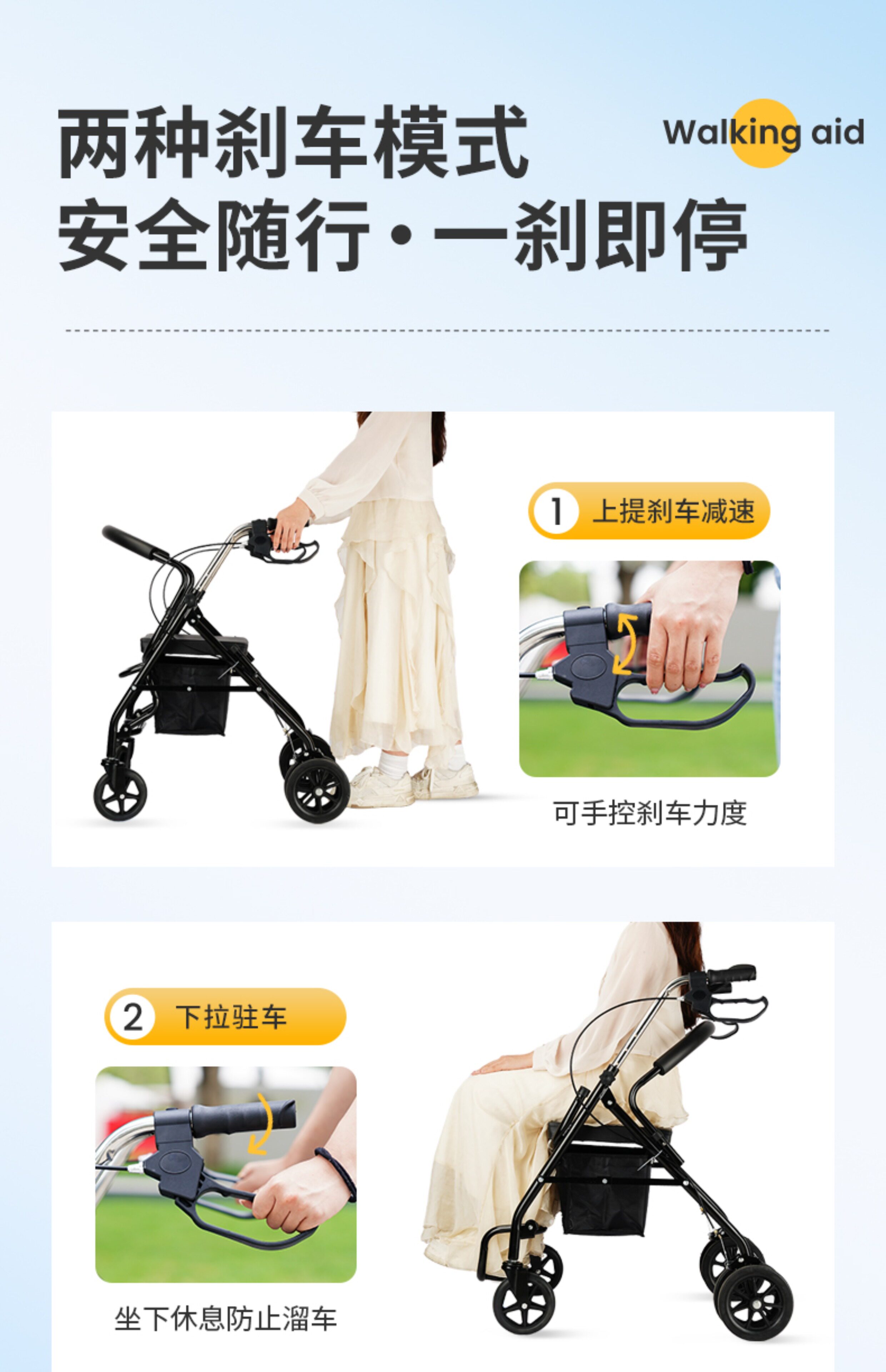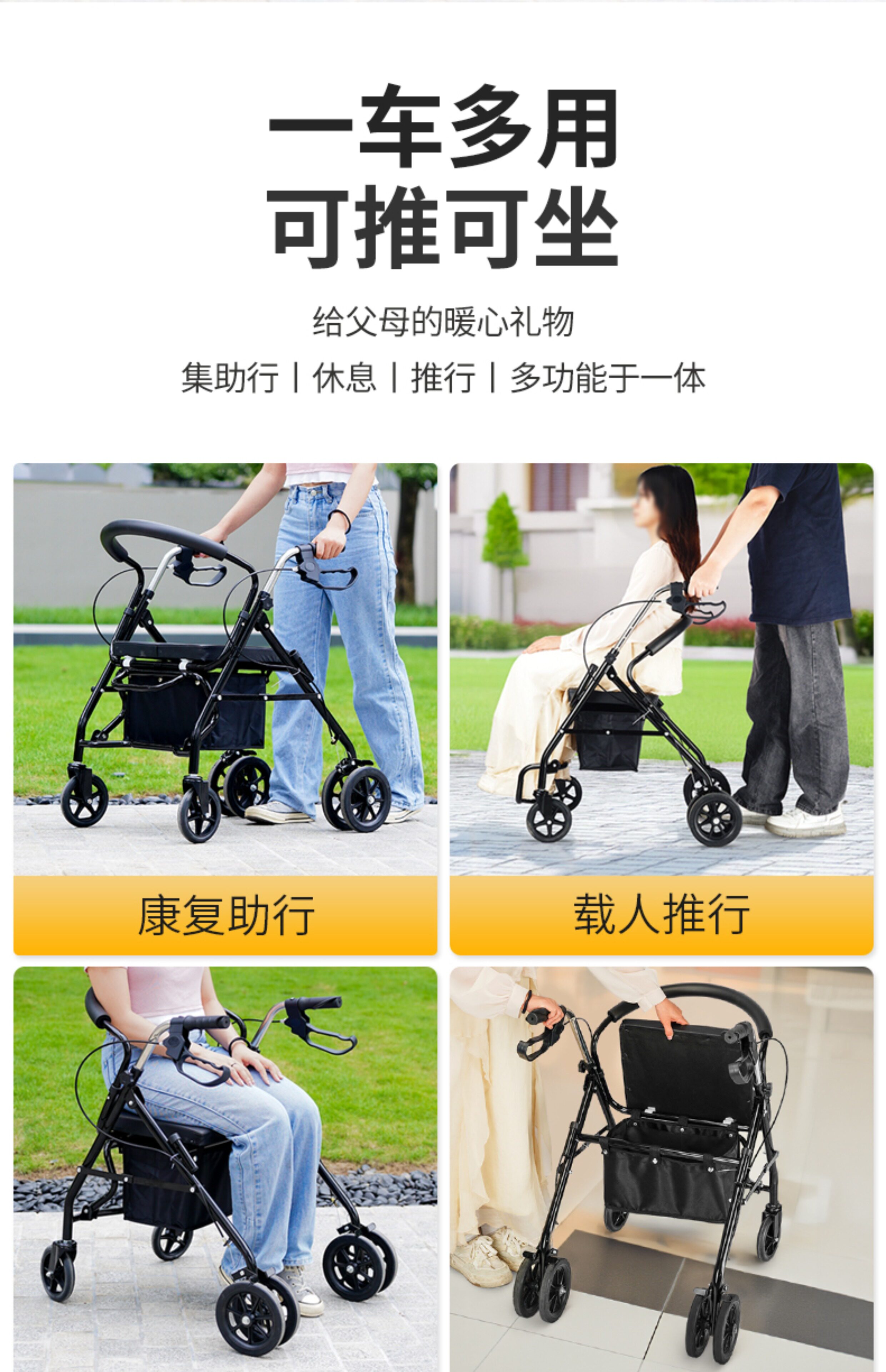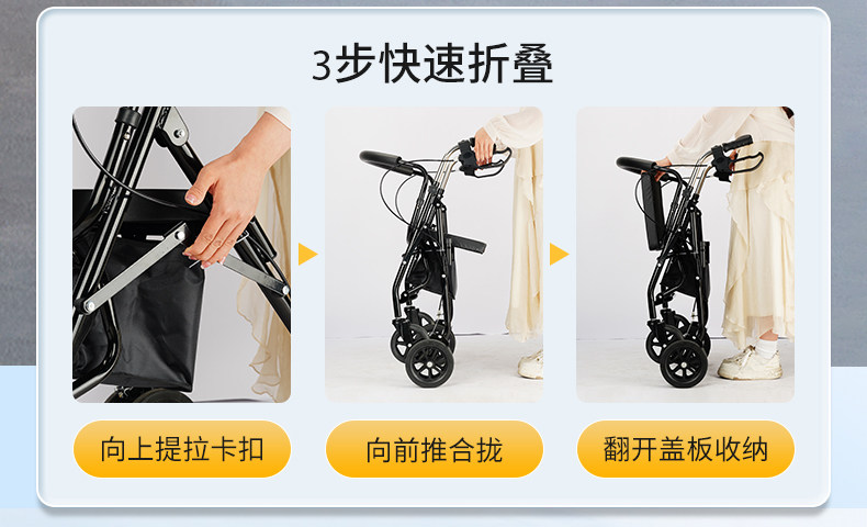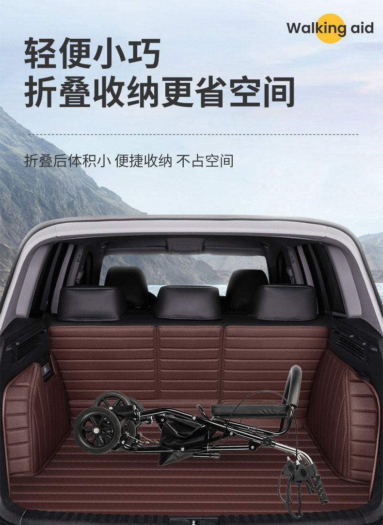Тележка для пожилых людей с сидением, складная корзина для покупок, вспомогательный четырехколесный автомобиль, учит ходить