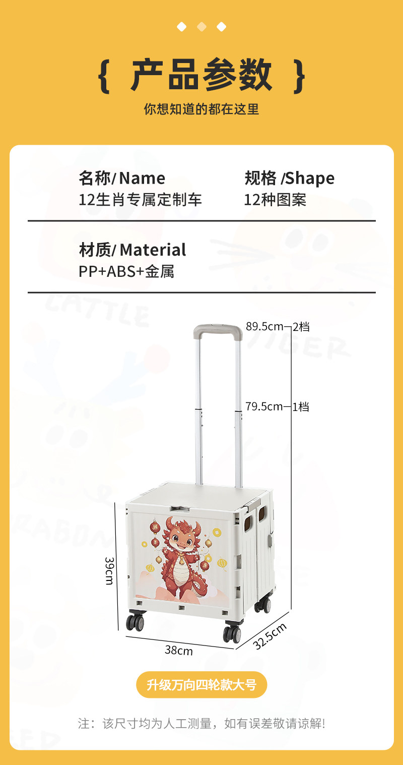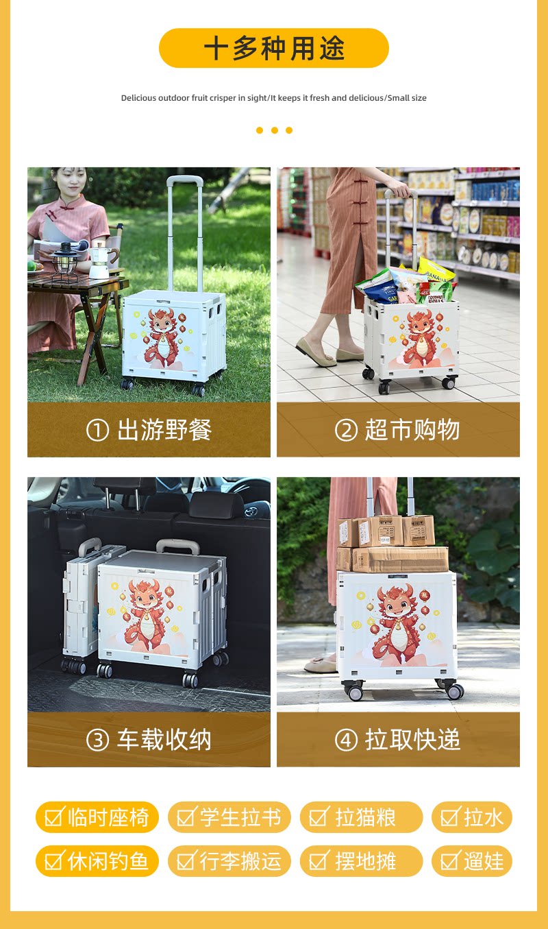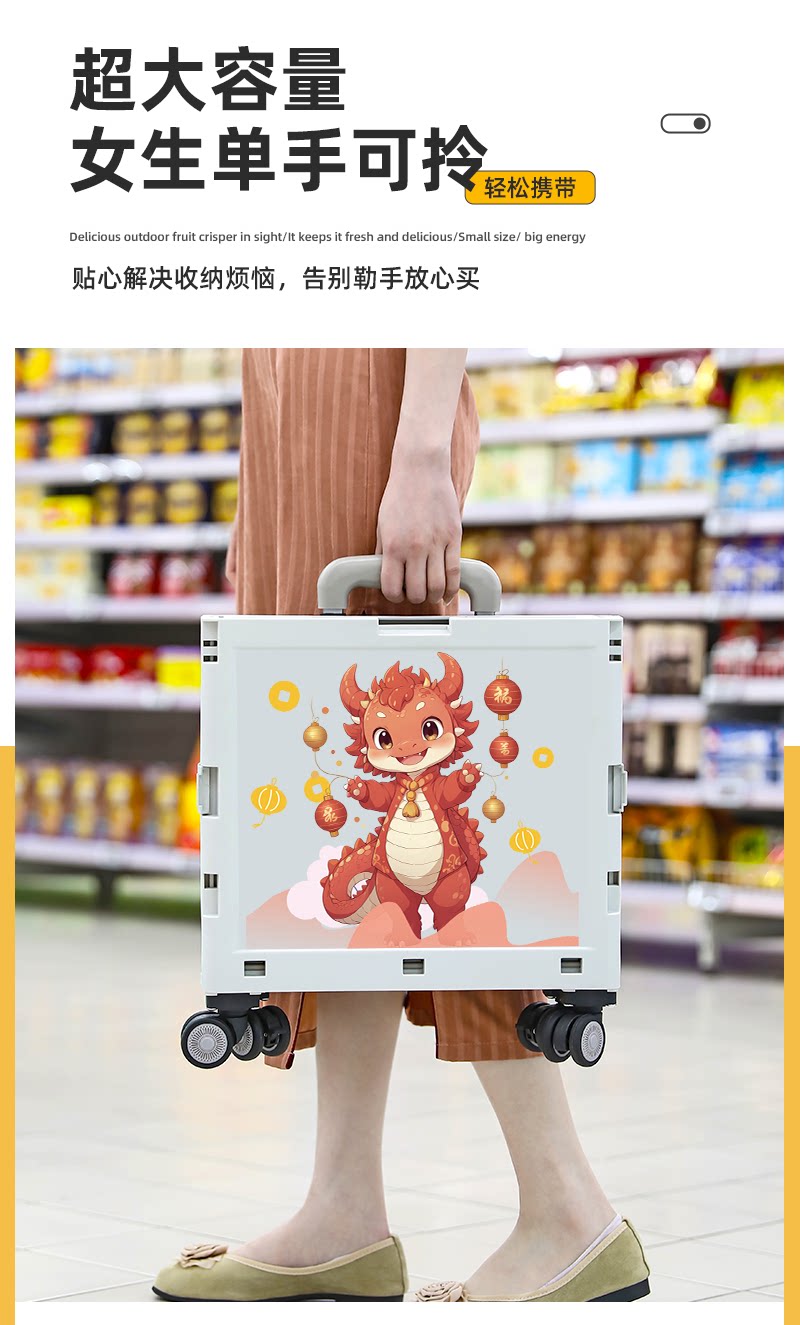 Продуктовая тележка, складная портативная корзина для покупок для домашнего использования, китайский гороскоп