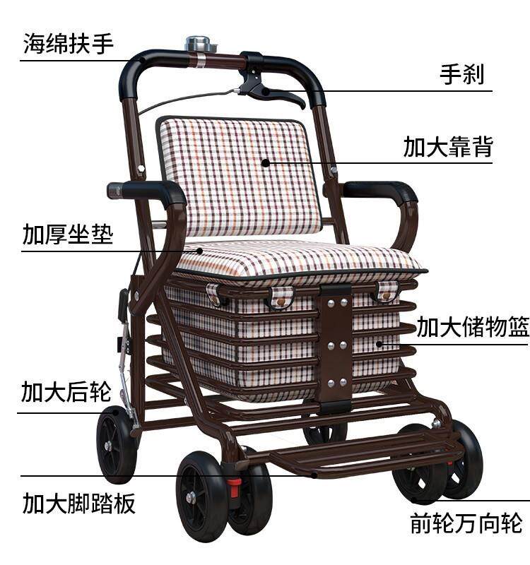 Троллей -пожилые люди могут сидеть на ходуне с четырьмя колесами, складывающими мягкие стулья, которые могут оттолкнуть пожилые люди