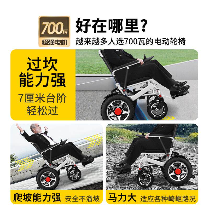 Мощная электрическая инвалидная коляска мощностью 700 Вт для преодоления препятствий для пожилых людей, складной интеллектуальный полностью автоматический скутер для инвалидов