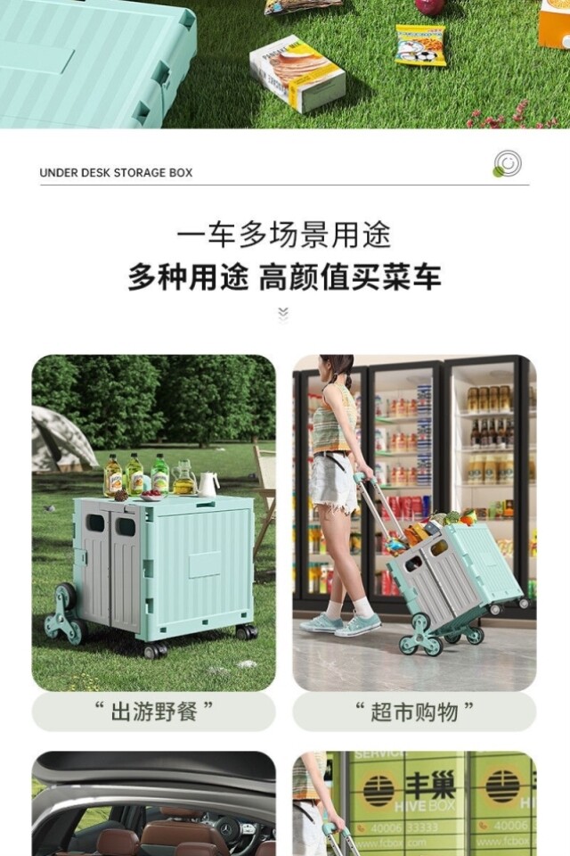 Чемодан, ящик для хранения, дорожная коробка для уличного катания для кемпинга, складная тележка для школьников