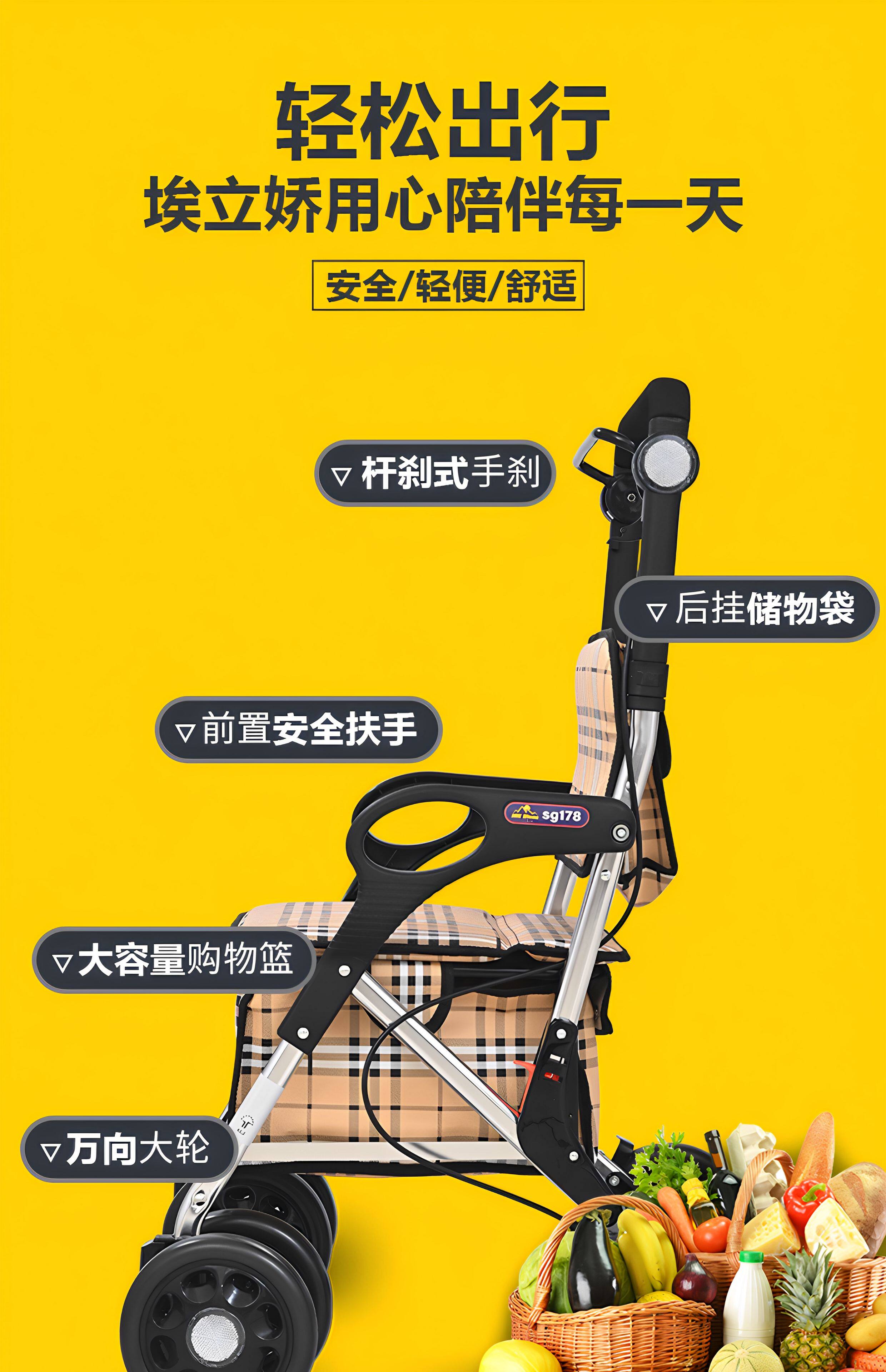 Металлическая складная корзина для покупок, продуктовая тележка с сидением, алюминиевый сплав