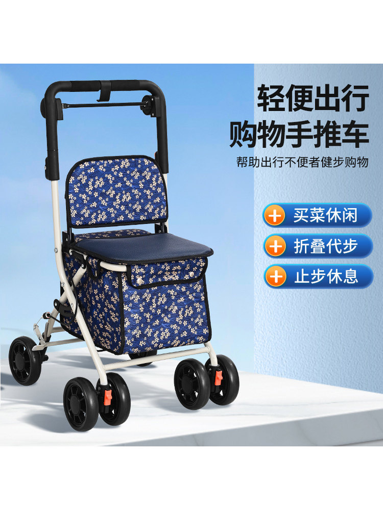 Продуктовая тележка для пожилых людей, складной четырехколесный автомобиль