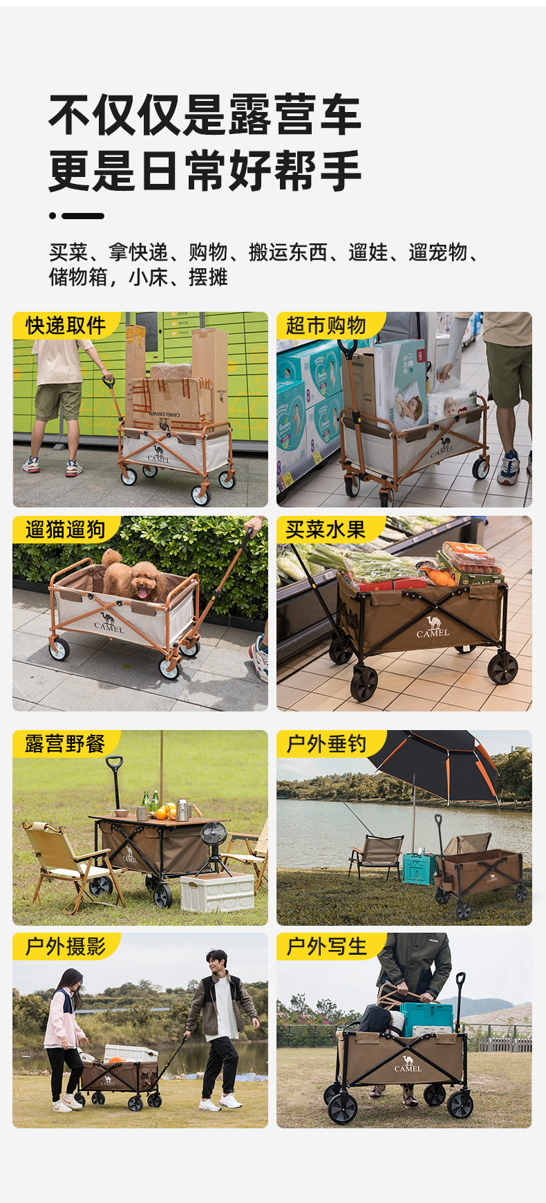 Вместительный и большой детский складной велосипед для кемпинга для домашнего использования, прочная портативная тележка