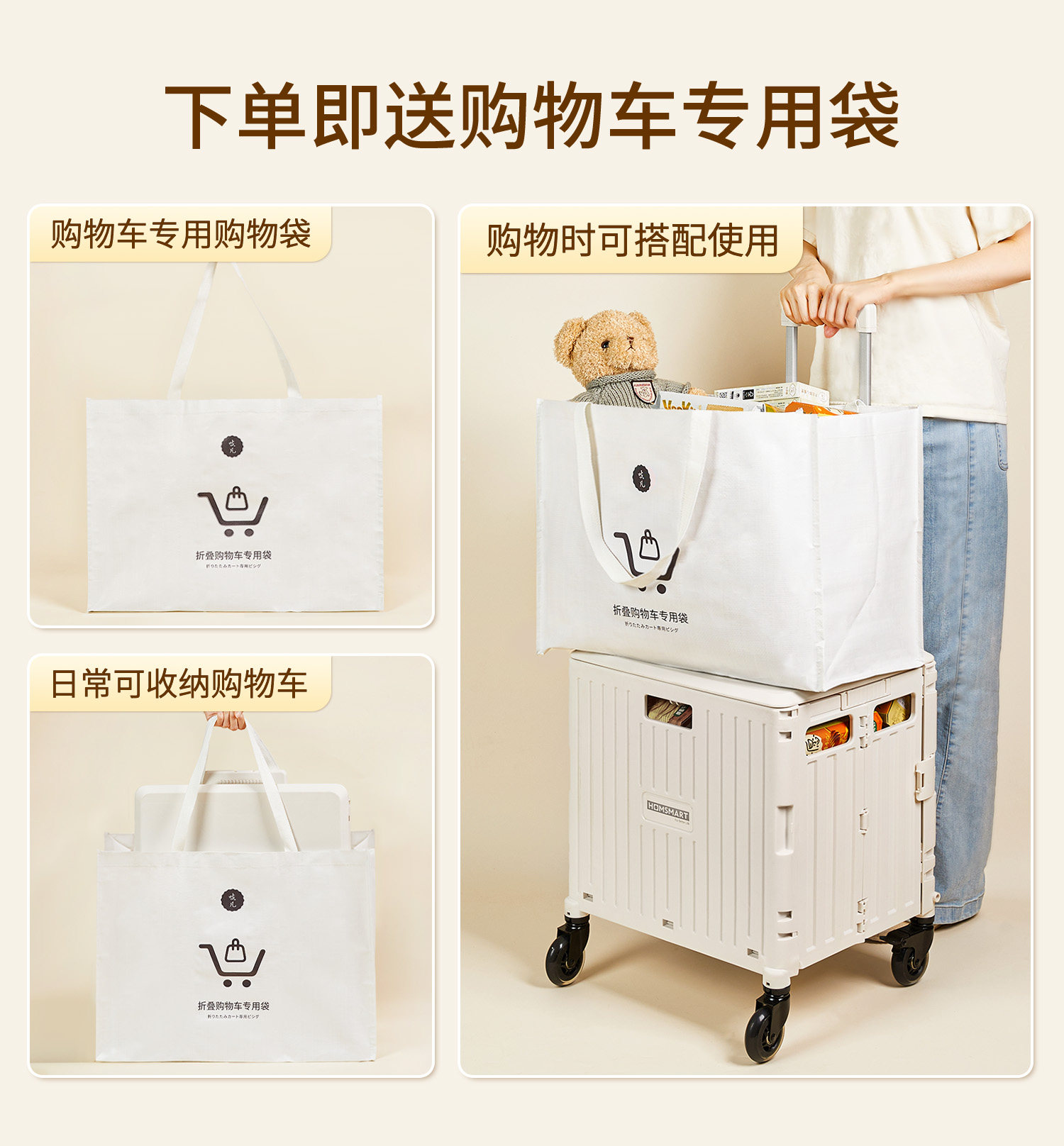 Японская складная корзина для покупок для домашнего использования, продуктовая тележка, новая коллекция