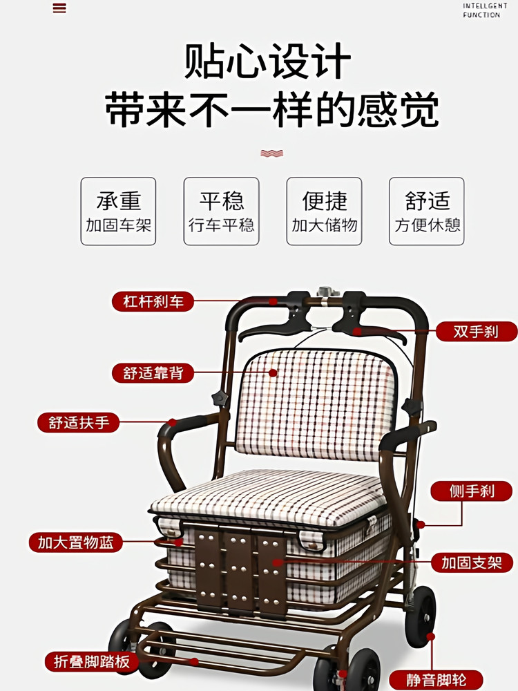 Ходунки, простая тележка с сидением, складная портативная корзина для покупок