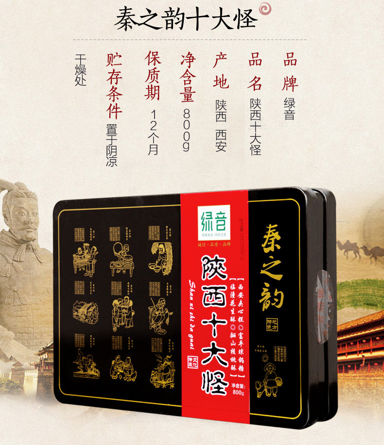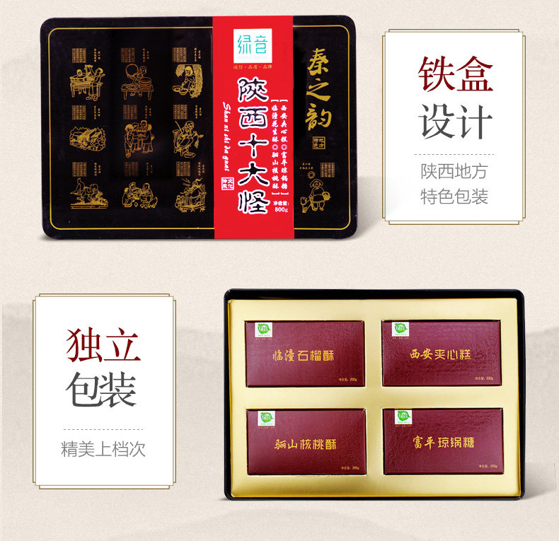 Shaanxi Specialty Shound Specialty Snack Passter 800G зеленый звук Ten Monster Iron Gift Box Подарочная коробка Подарок локальные характеристики