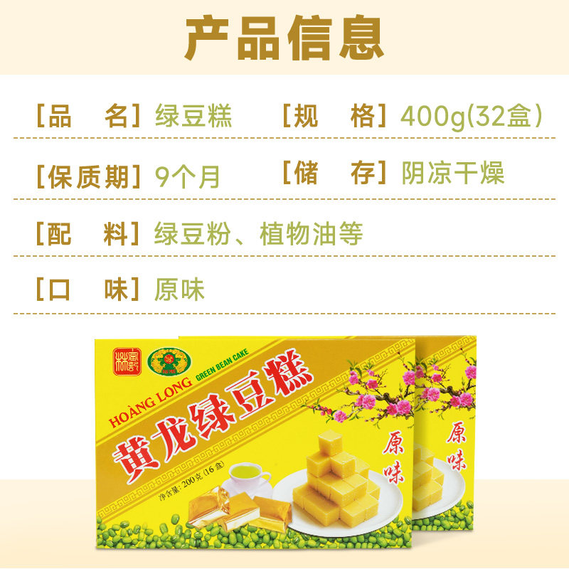 Вьетнам импортирован Huanglong Mung Bean Cake Традиционное печень 200G*2 коробки закуски и закуски детства.