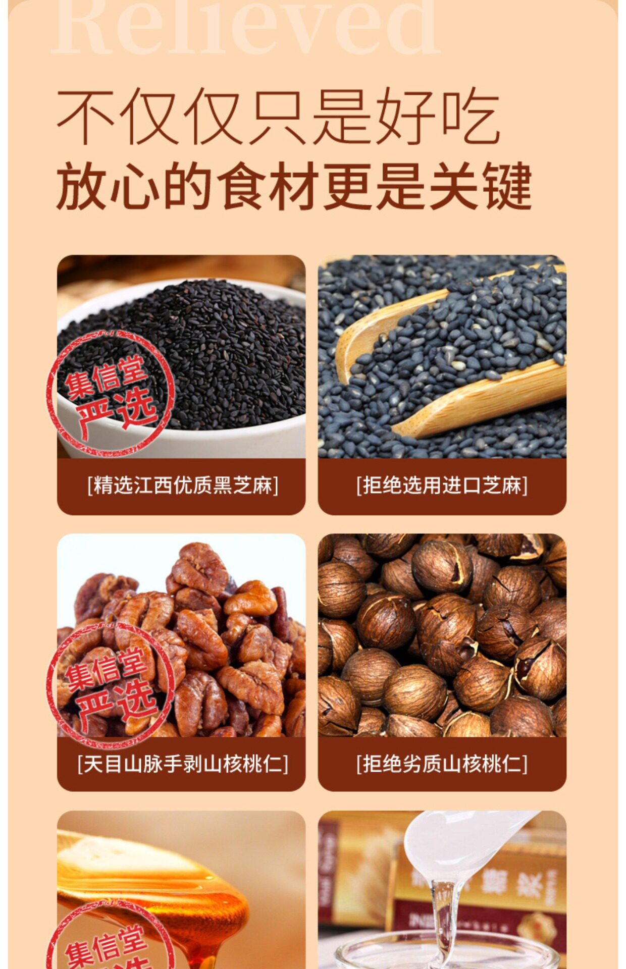 Медсфуд медленный язык медовый гора грецкие орехи и кунжутные пирожные с низкой температурой выпечка высокого кальция 即 ингредиенты питания закуски