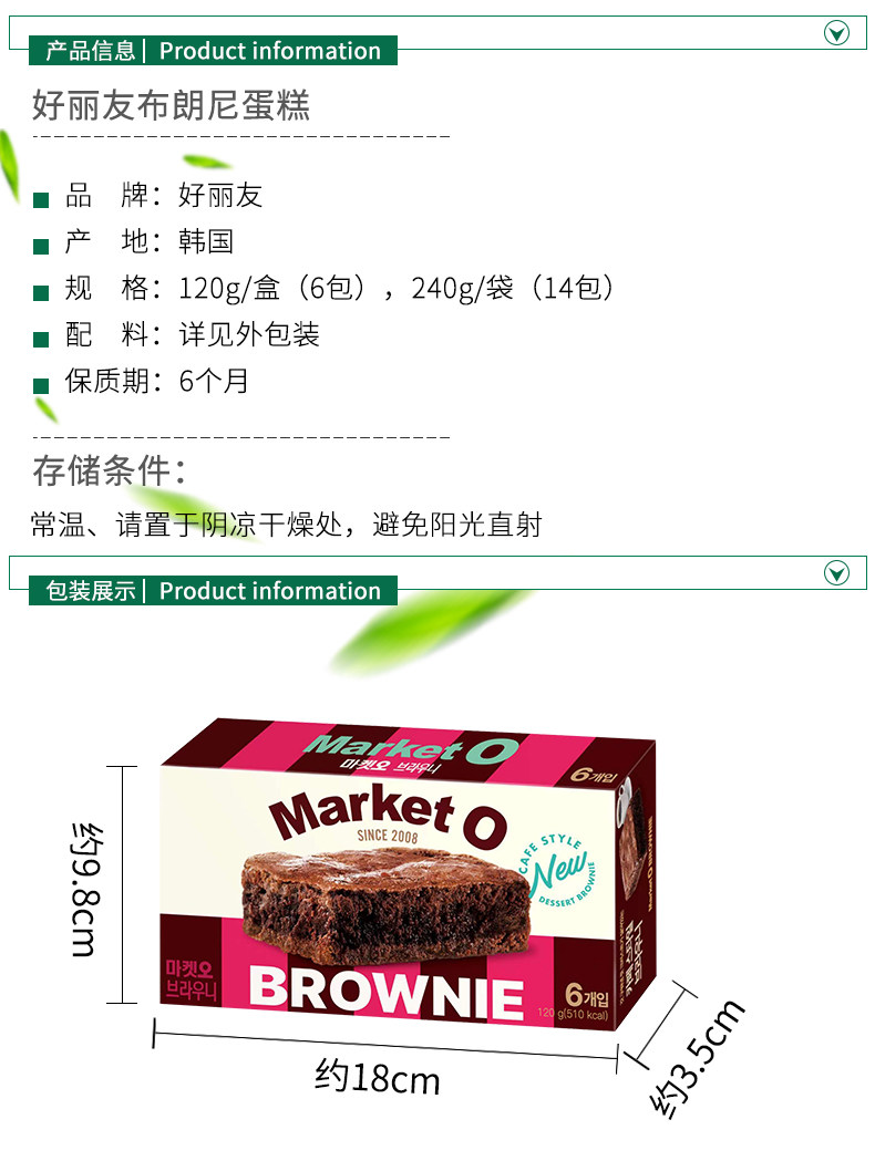| Вкус: | Брауни торт 120g*1 коробка (1 коробка 6 пакетов), Брауни торт 120g*2 коробки (1 коробка 6 упаковок), Брауни торт 120g*3 коробки (1 коробка 6 пакетов), Брауни торт 240g*1 сумка (1 сумка 14 мешков), Брауни Торт 240G*2 мешки (1 сумка 14 мешков) |