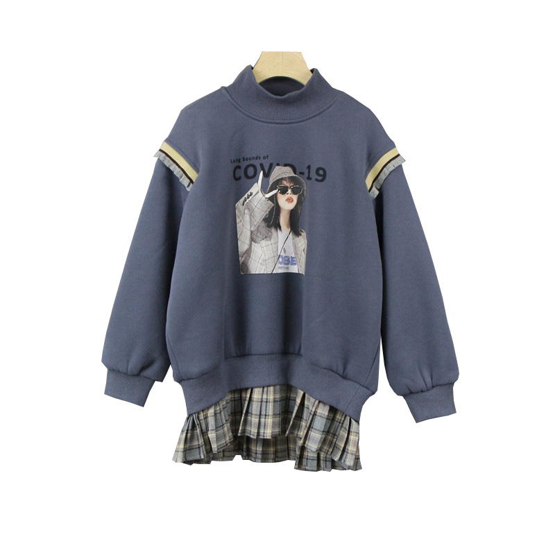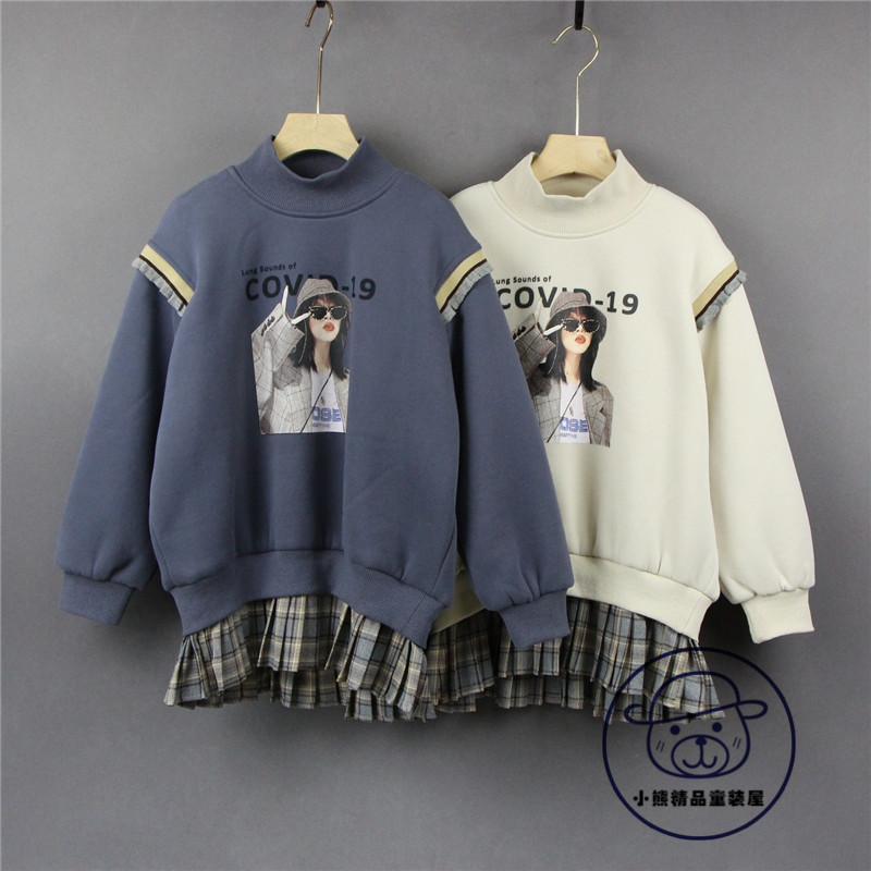 Зимний комплект для отдыха, толстовка, детская одежда, 2020, в корейском стиле, в западном стиле, оверсайз, высокий воротник, увеличенная толщина