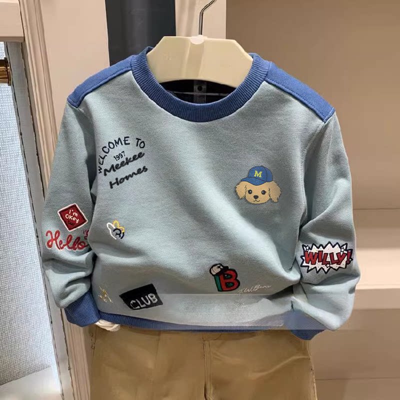 Осенняя толстовка для мальчиков с круглым воротником для отдыха, с вышивкой
