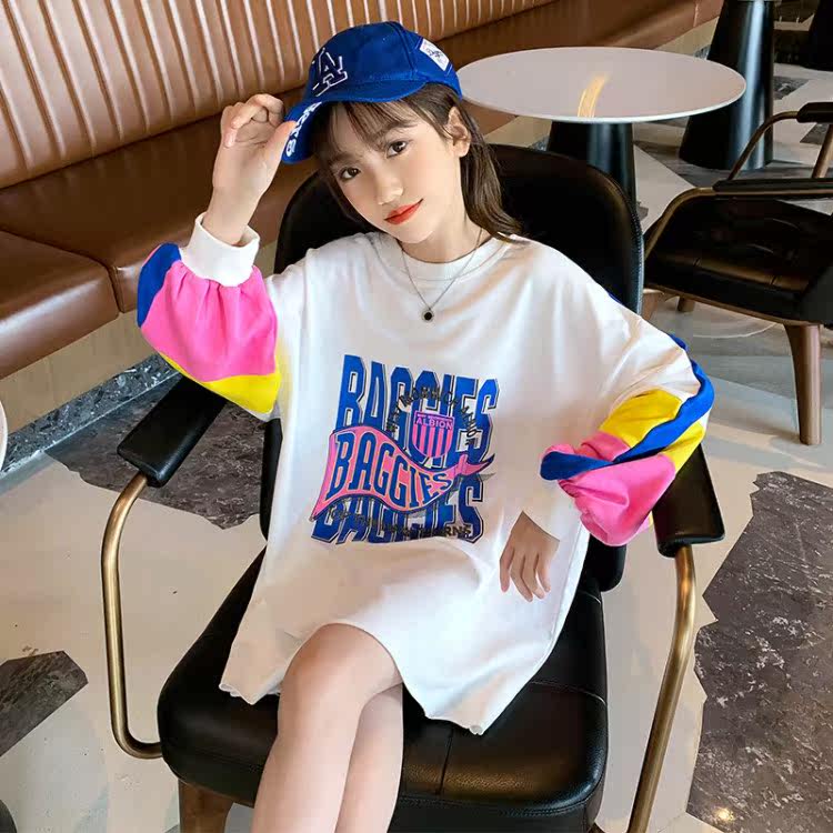 Длинная хлопковая толстовка, футболка, платье, средней длины, в корейском стиле, популярно в интернете, в западном стиле