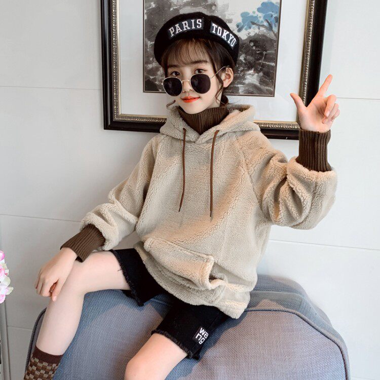 Демисезонный детский свитер с капюшоном, утепленная удерживающая тепло толстовка, в корейском стиле, в западном стиле