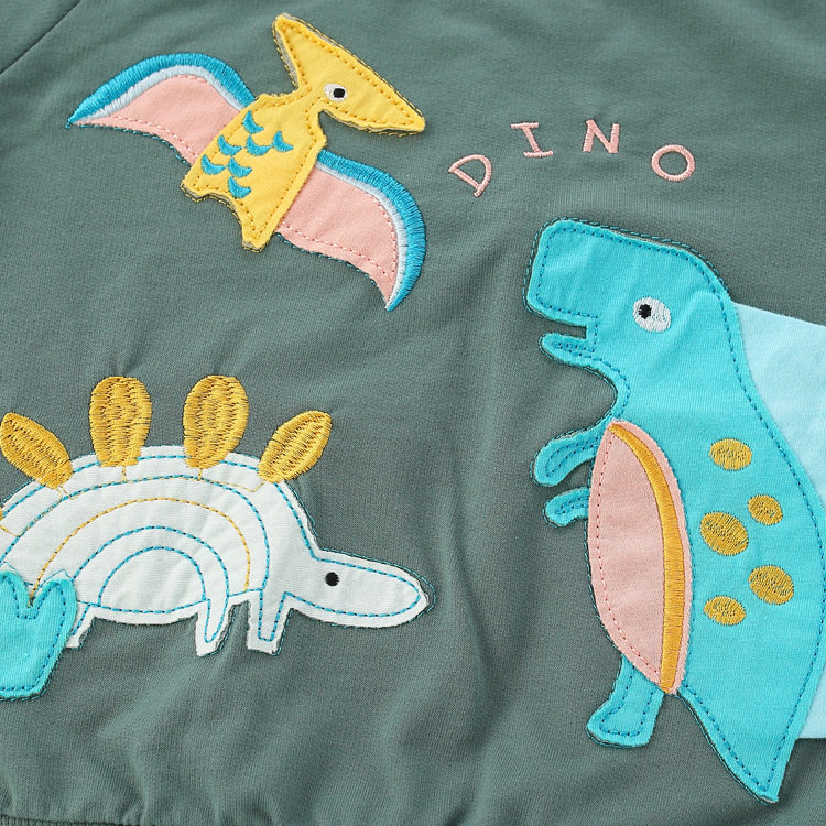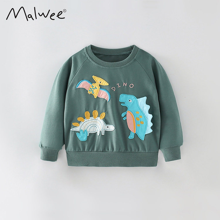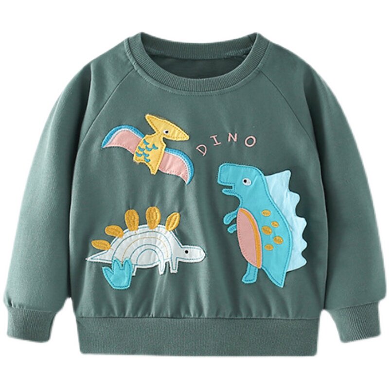 Демисезонный хлопковый лонгслив с круглым воротником, детский мультяшный динозавр для мальчиков, пластырь, новая коллекция, с вышивкой