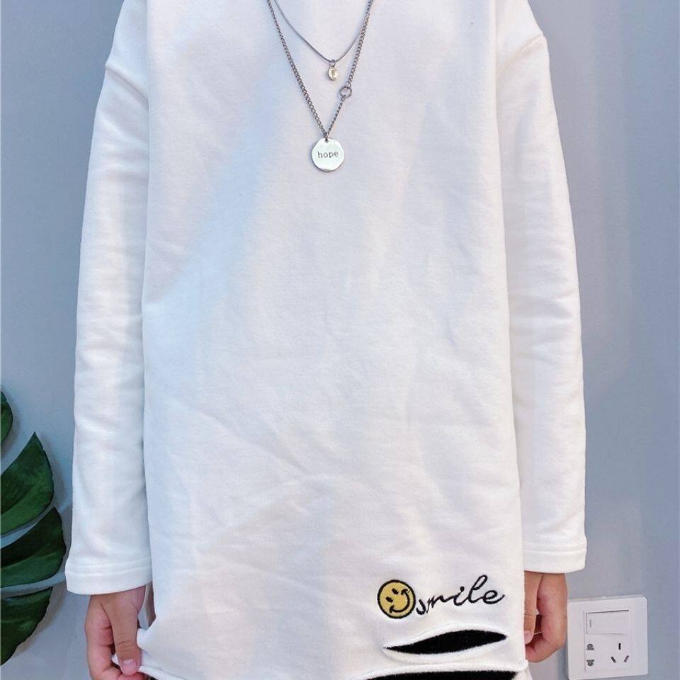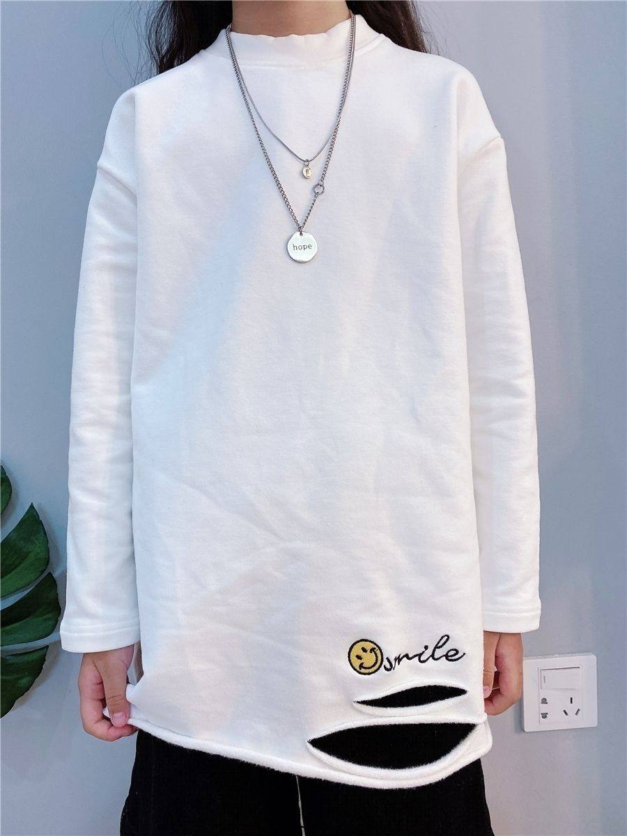 Зимняя утепленная толстовка, хлопковая белая приятная телу футболка, подходит для подростков, в западном стиле